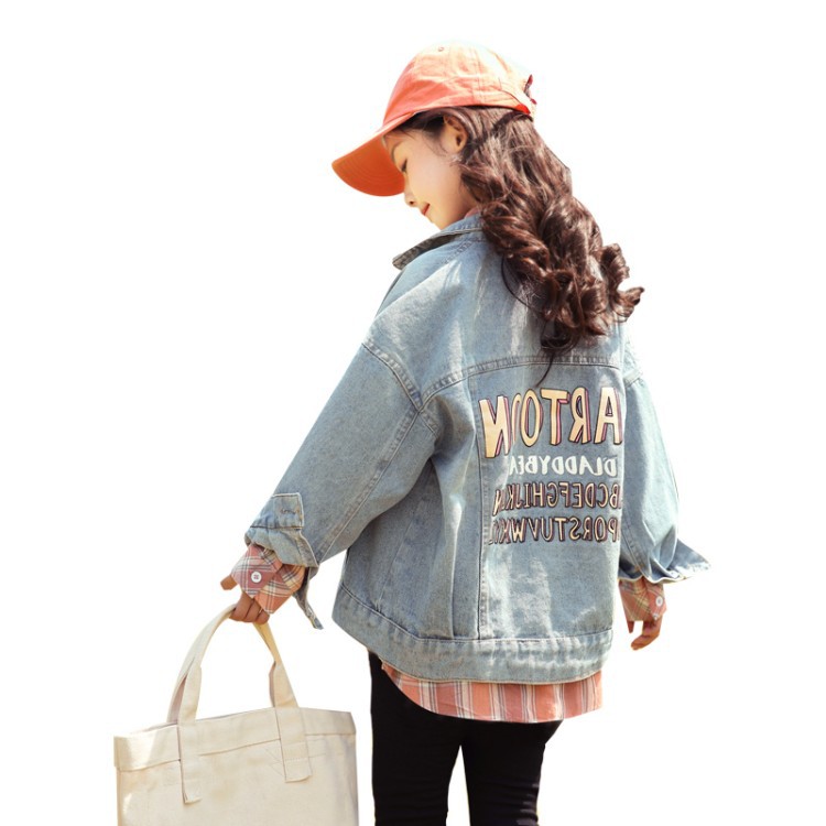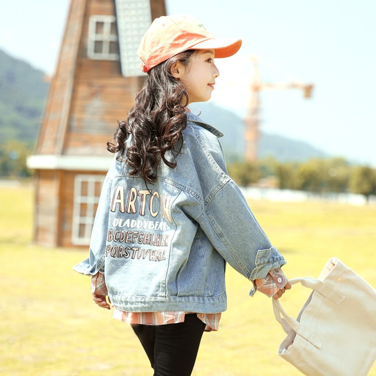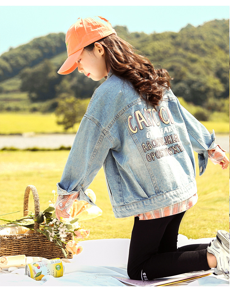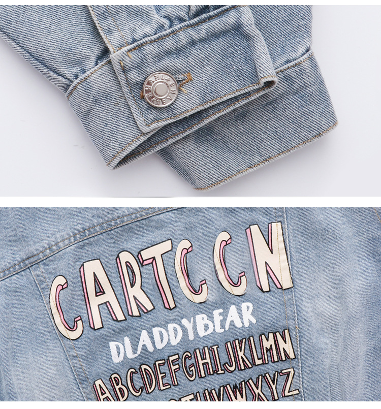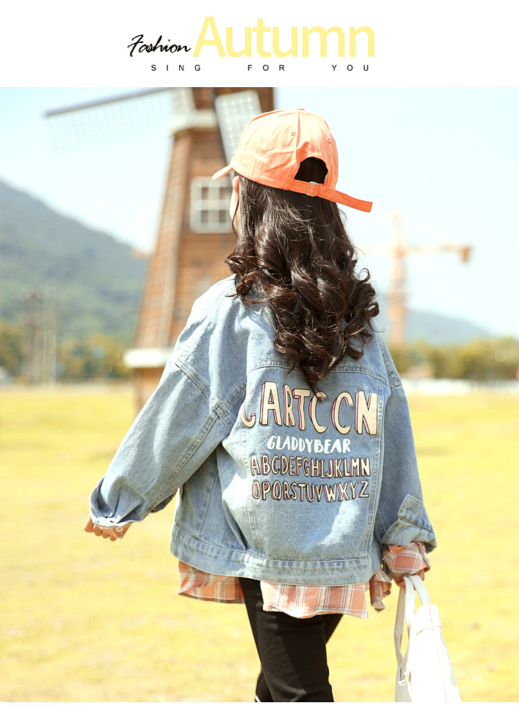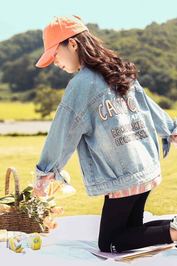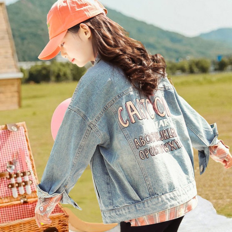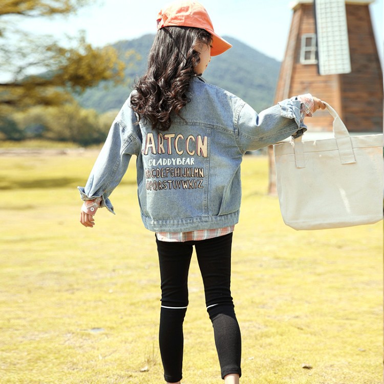 2024년 신상 여아 데님 재킷, 봄 가을용, 중대형 아동용 패션 만화 캐릭터 아우터, 한국 스타일스토어 가기