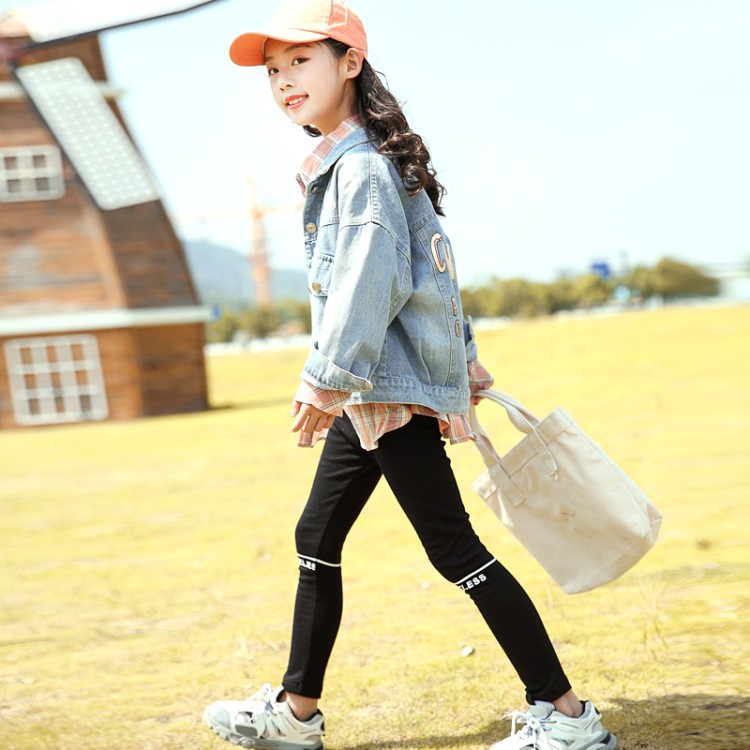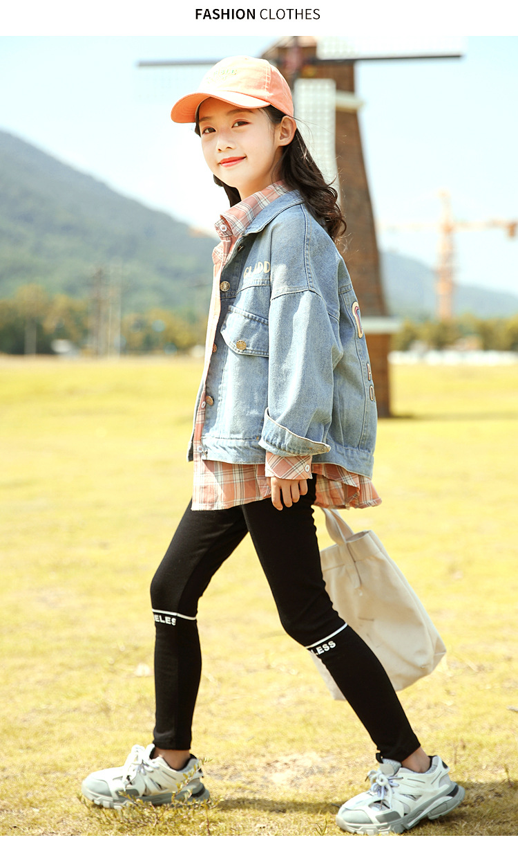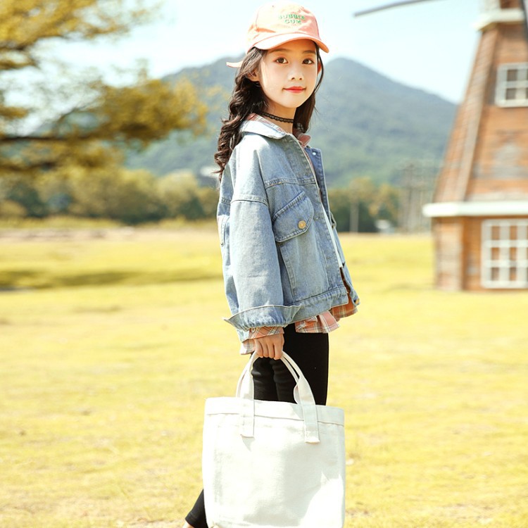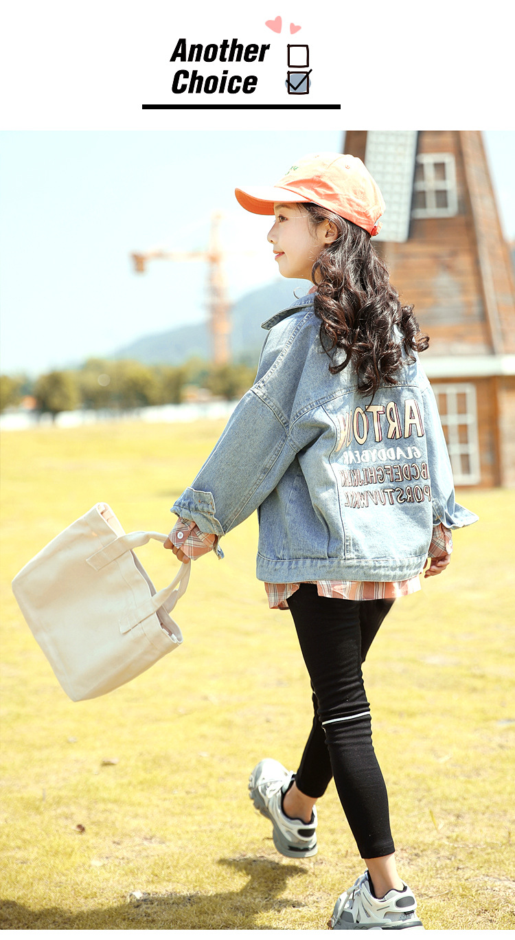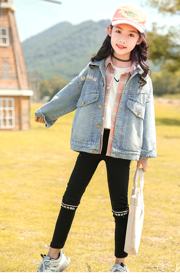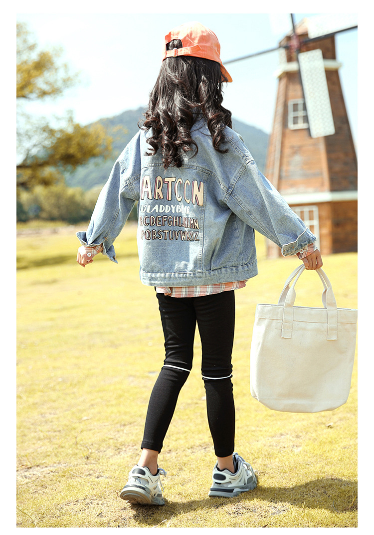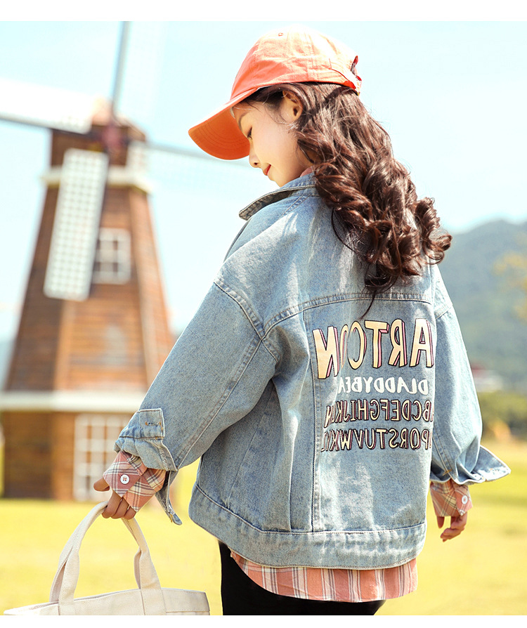 2024년 신상 여아 데님 재킷, 봄 가을용, 중대형 아동용 패션 만화 캐릭터 아우터, 한국 스타일스토어 가기