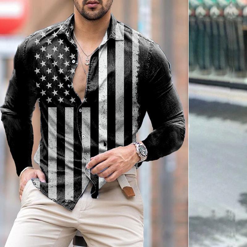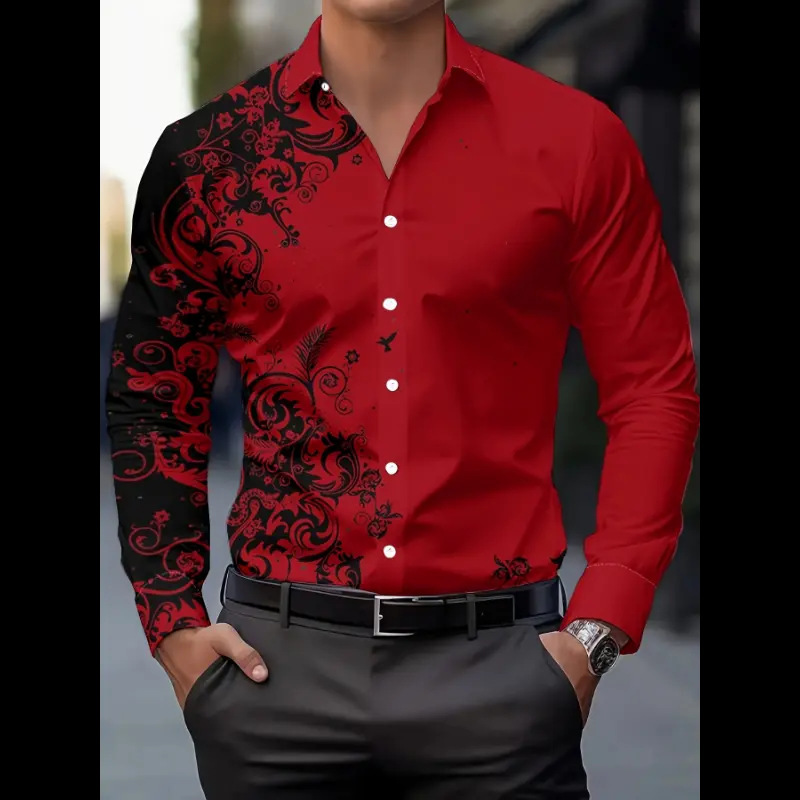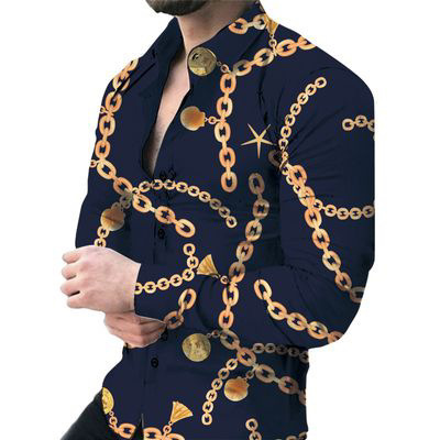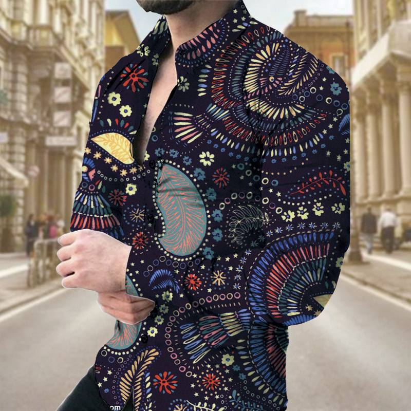 대외 무역 크로스보더 유럽 사이즈 독립 웹사이트 봄 가을 신상 유럽 및 미국 남성복 남성 긴팔 셔츠 캐주얼 프린트 셔츠스토어 가기