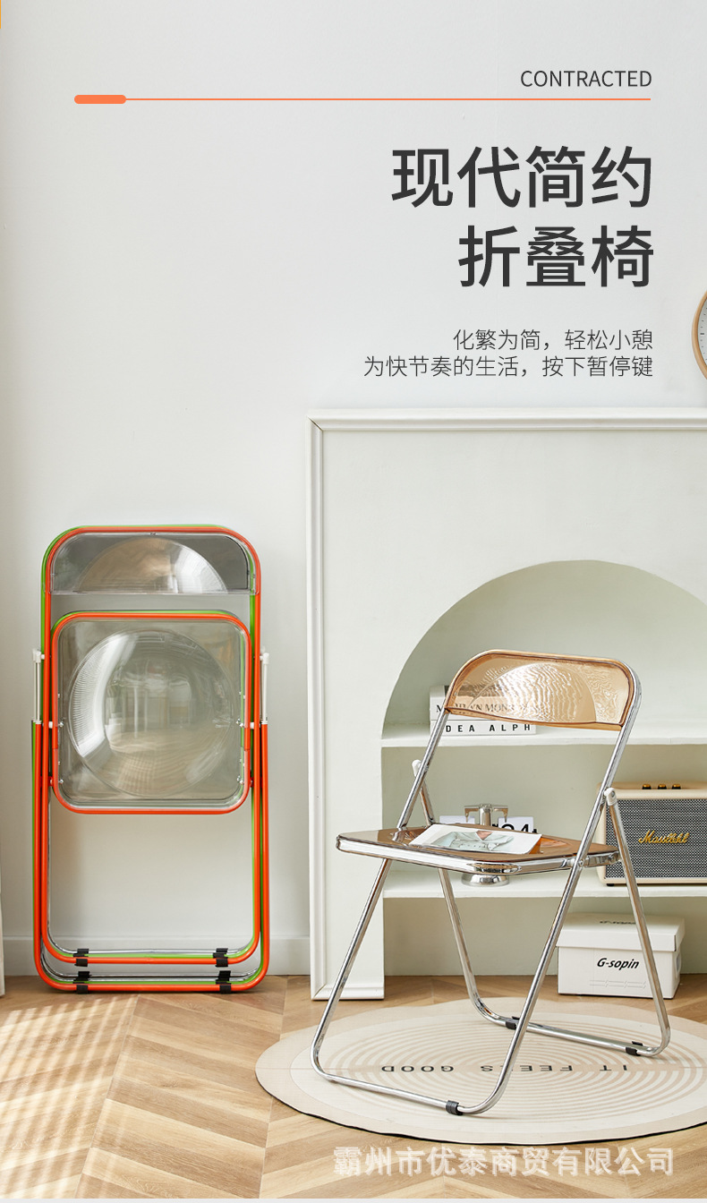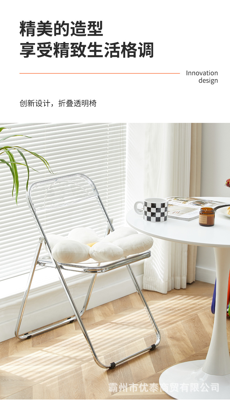 아크릴 투명 접이식 의자 소녀 침실 메이크업 의자 ins 사진 의자 가정용 휴대용 식사 의자 ins 스타일스토어 가기