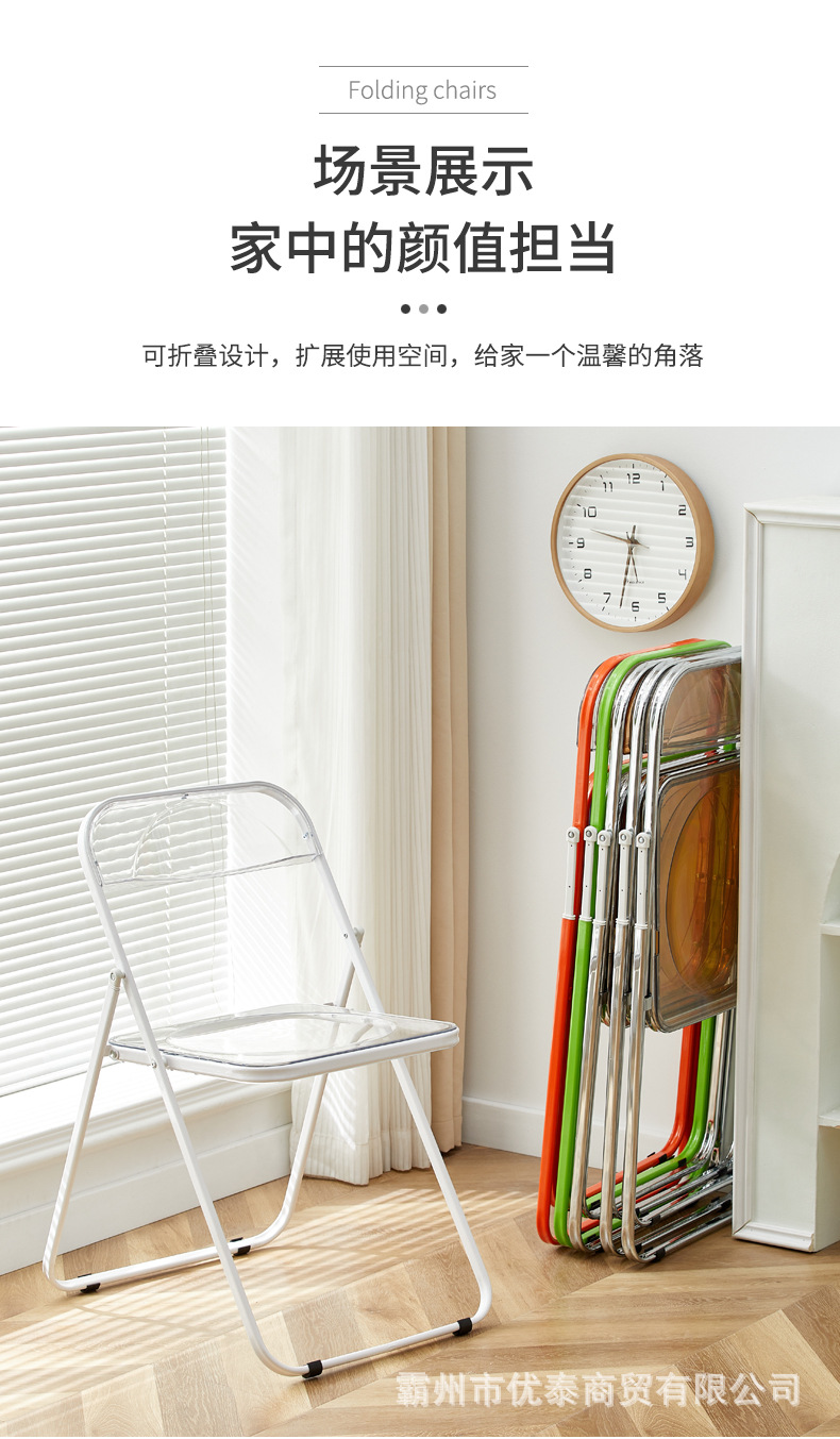 아크릴 투명 접이식 의자 소녀 침실 메이크업 의자 ins 사진 의자 가정용 휴대용 식사 의자 ins 스타일