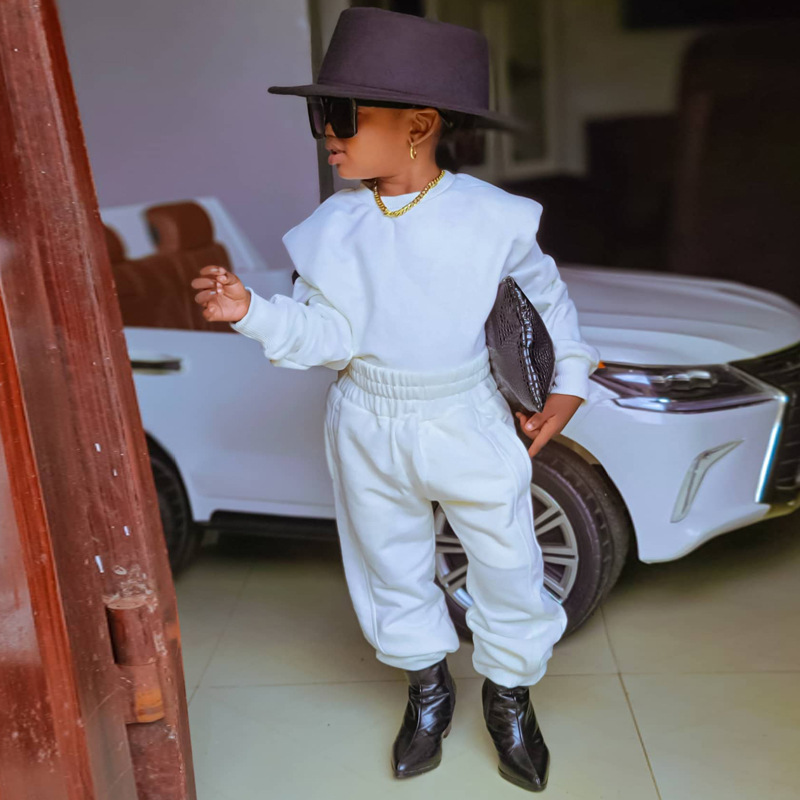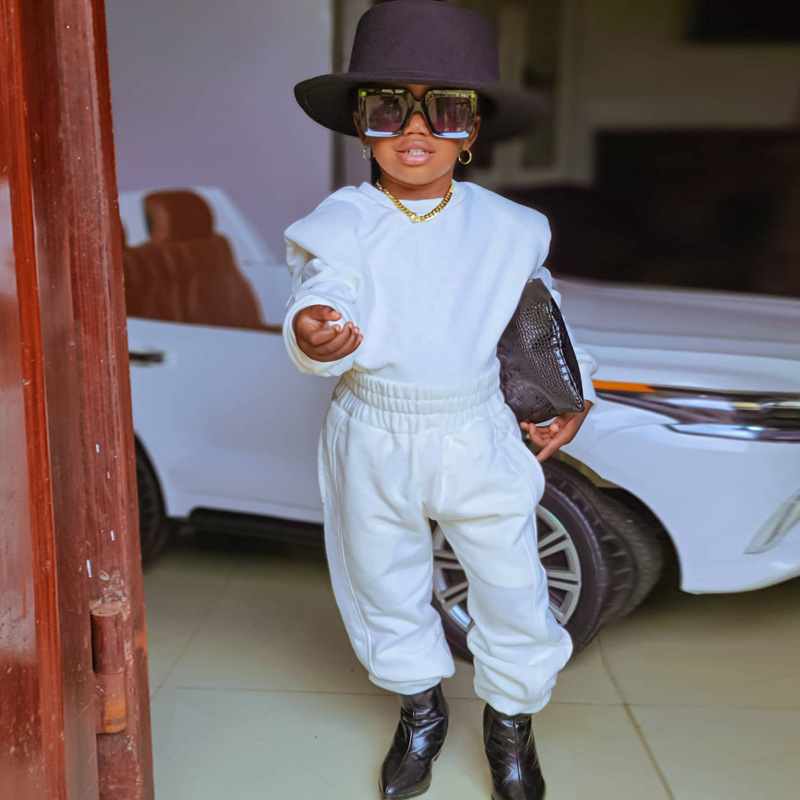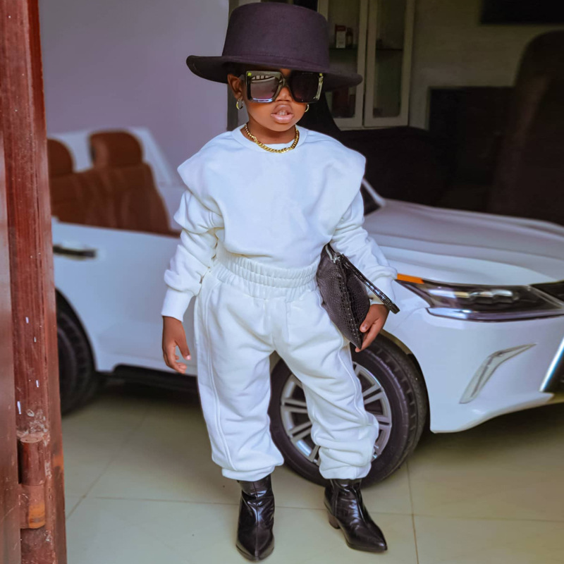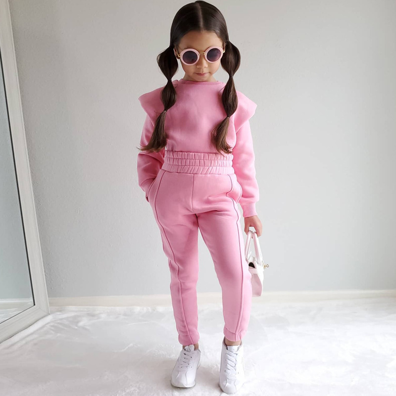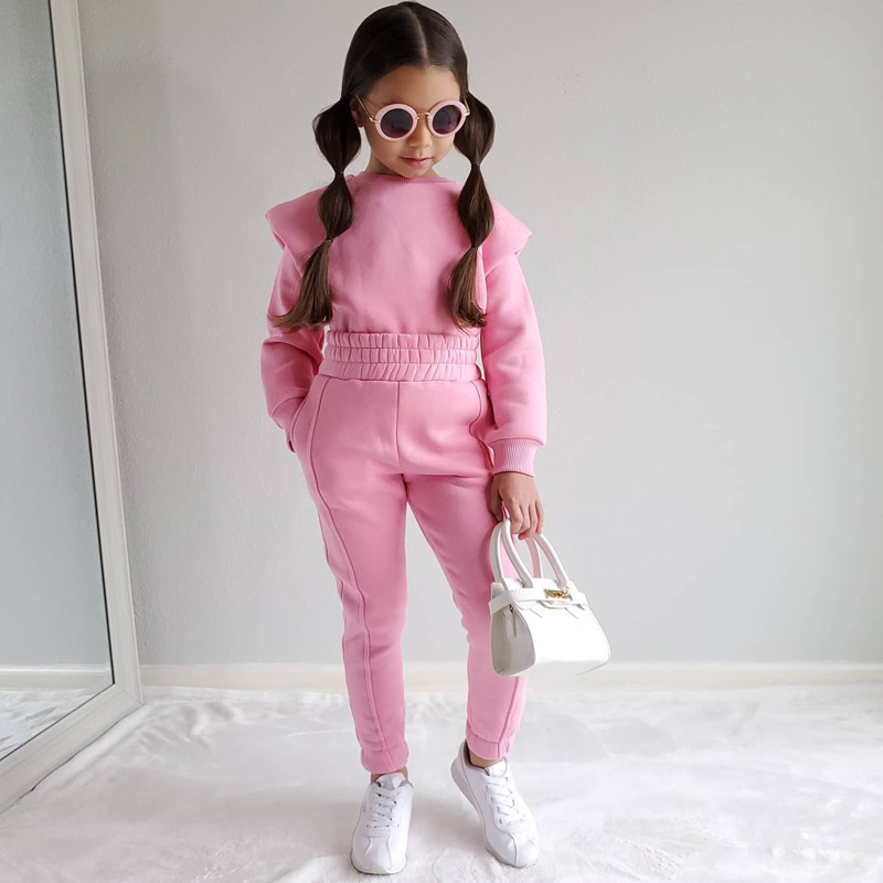 아마존 해외 무역 아동복 2025 가을 캐주얼 스포츠 신상 긴팔 단색 스웨트셔츠 세트 ins