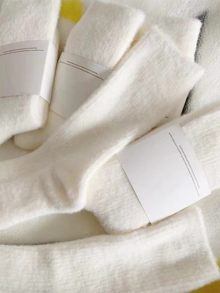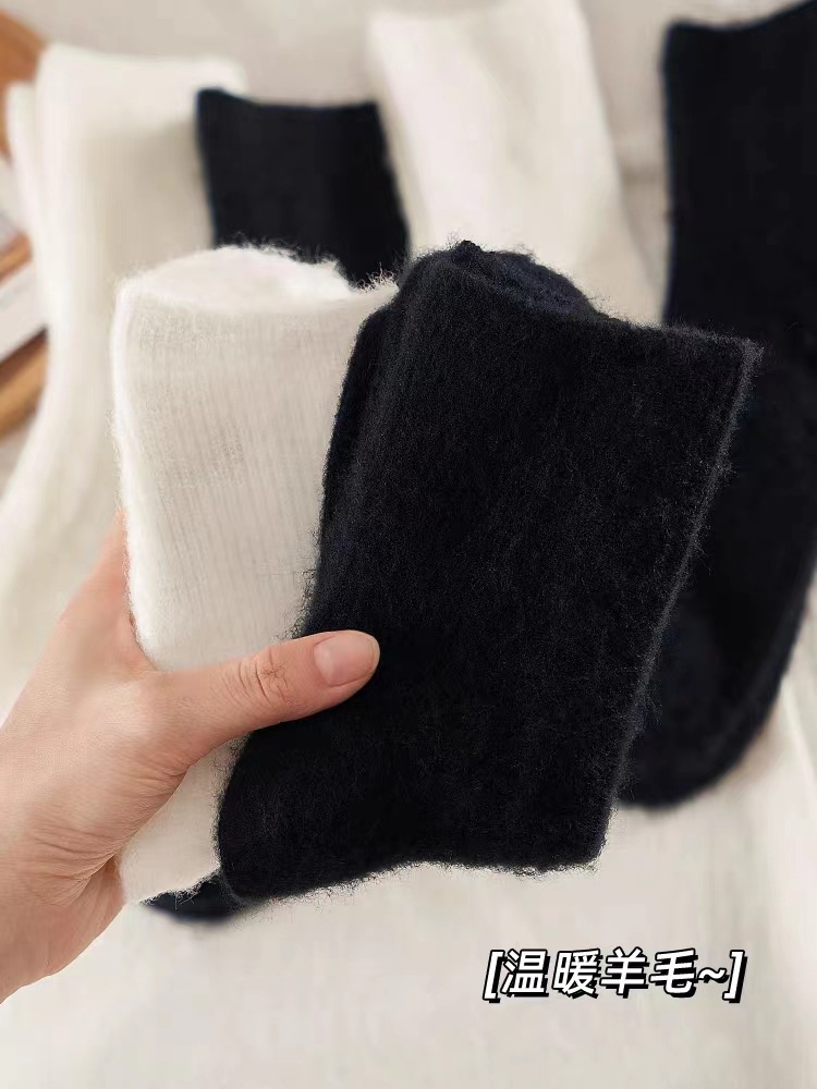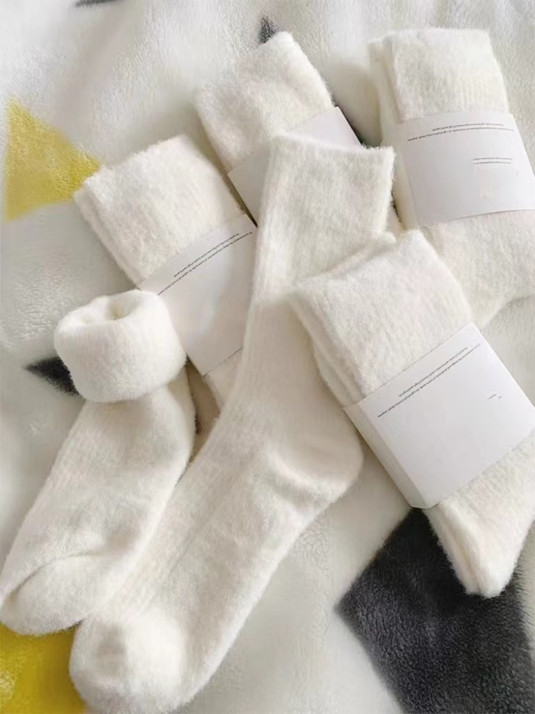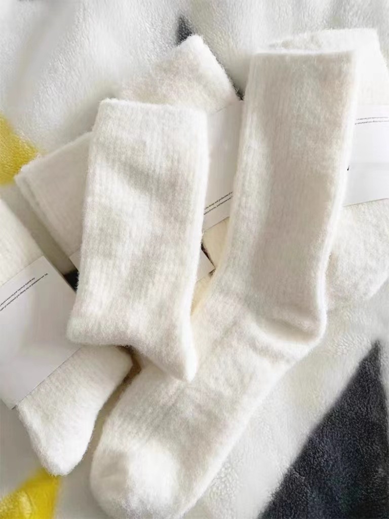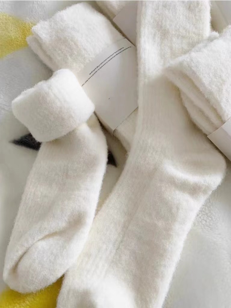 밍크 벨벳 통기성 양말 어린이 중간 튜브 양말 가을과 겨울 기모 두꺼운 모피 화이트 문 양말 따뜻한 모피 양말