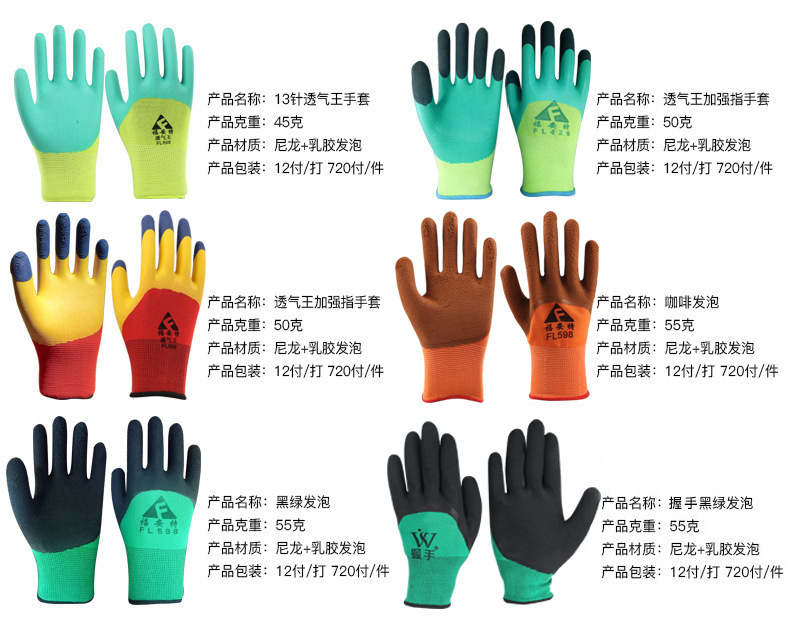 라텍스 장갑 맞춤 도매 13니들 나일론 발포 장갑 내마모성 미끄럼 방지 두꺼운 고무 코팅 작업 보호 장갑스토어 가기