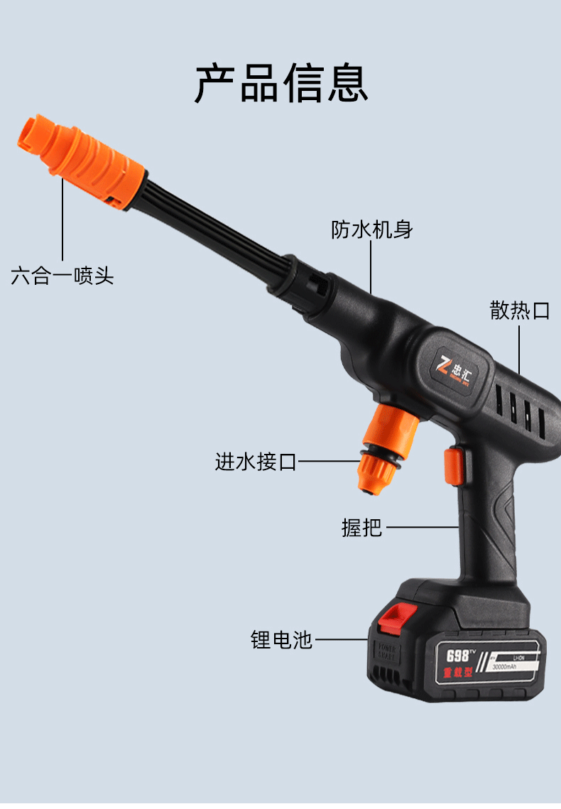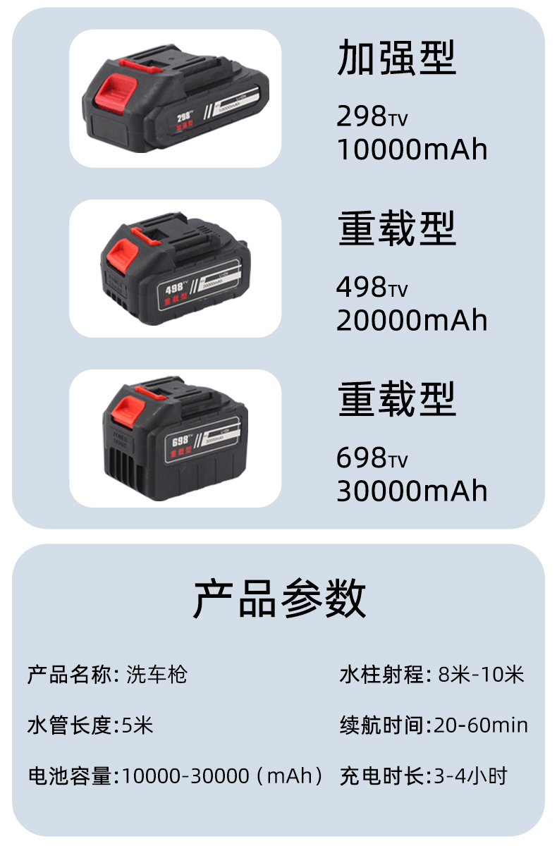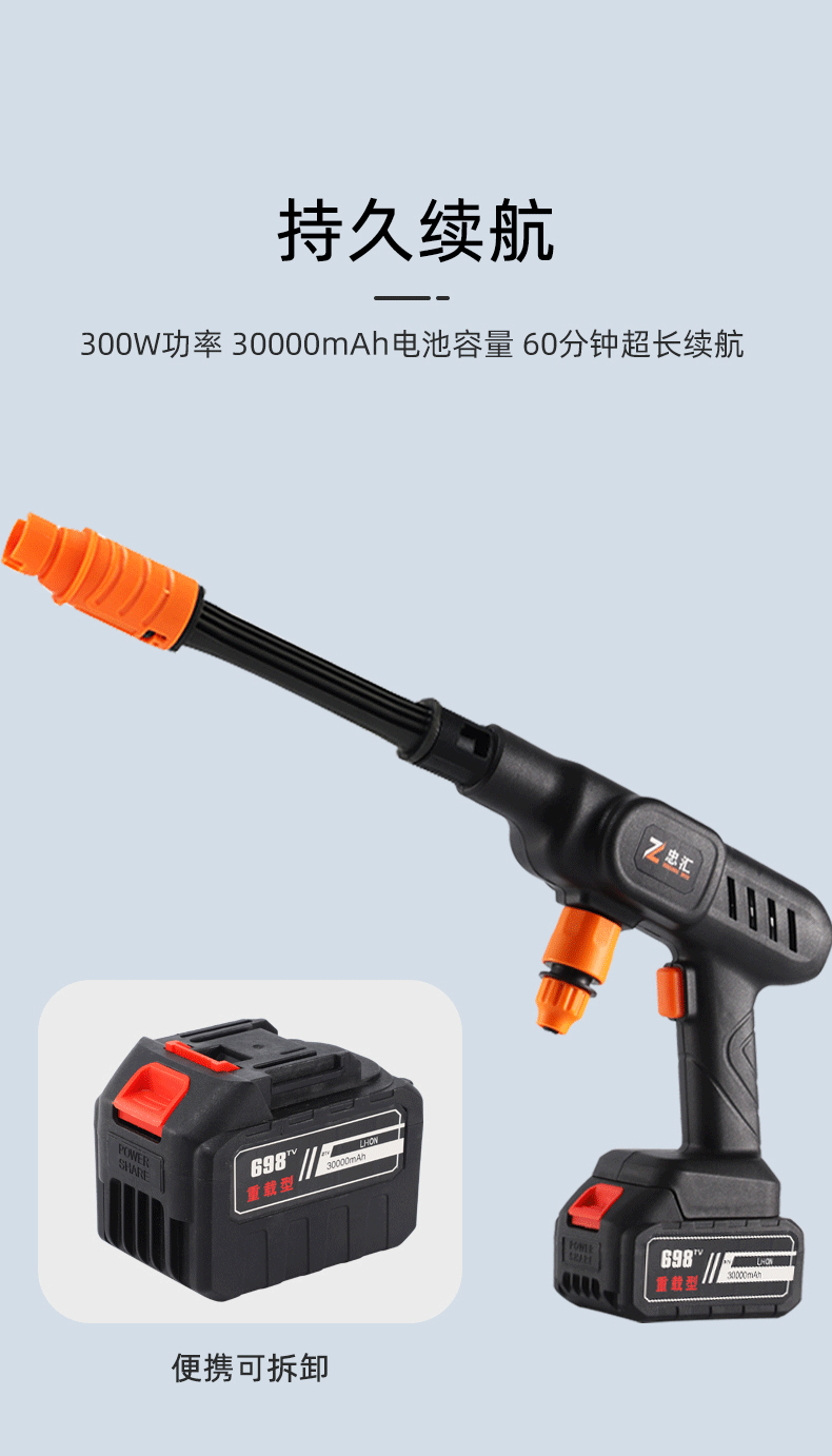 가정용 무선 세차 휴대용 충전식 고압 물총 고출력 리튬 세차 물 펌프 세차 물총
