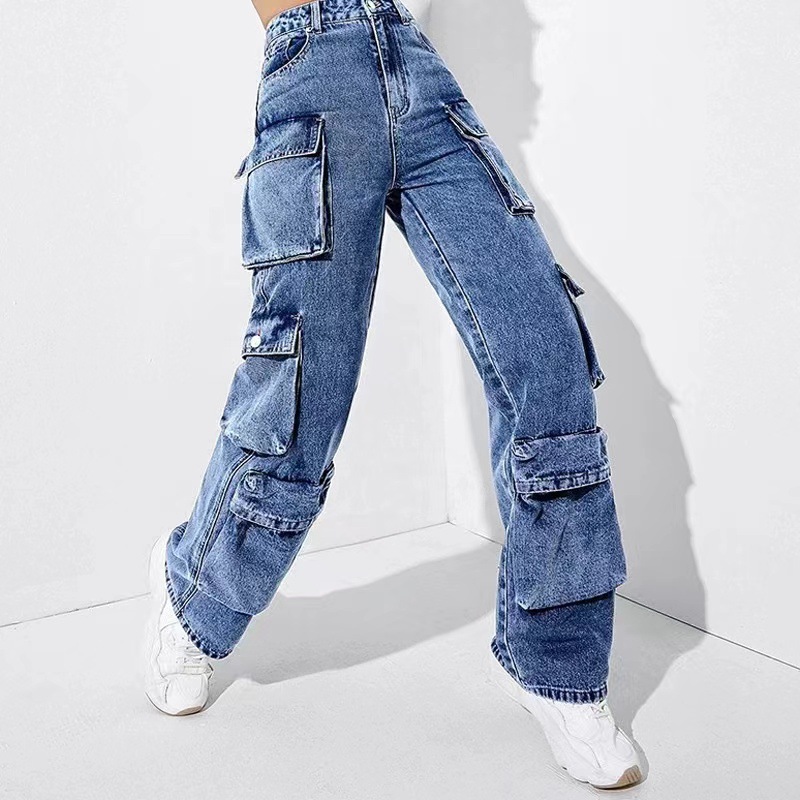 소스 팩토리 2023 여성용 청바지 커버 하이 웨이스트 플립 포켓 여성용 바지 루즈핏 여성용 바지스토어 가기