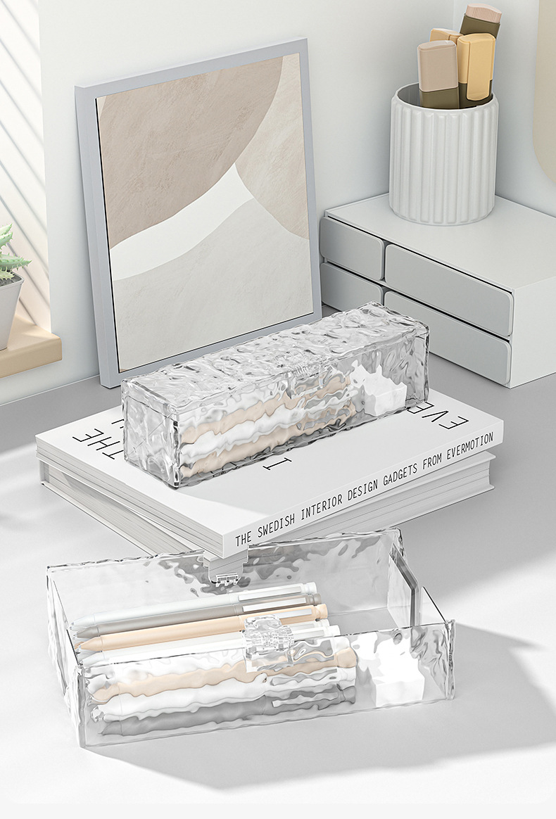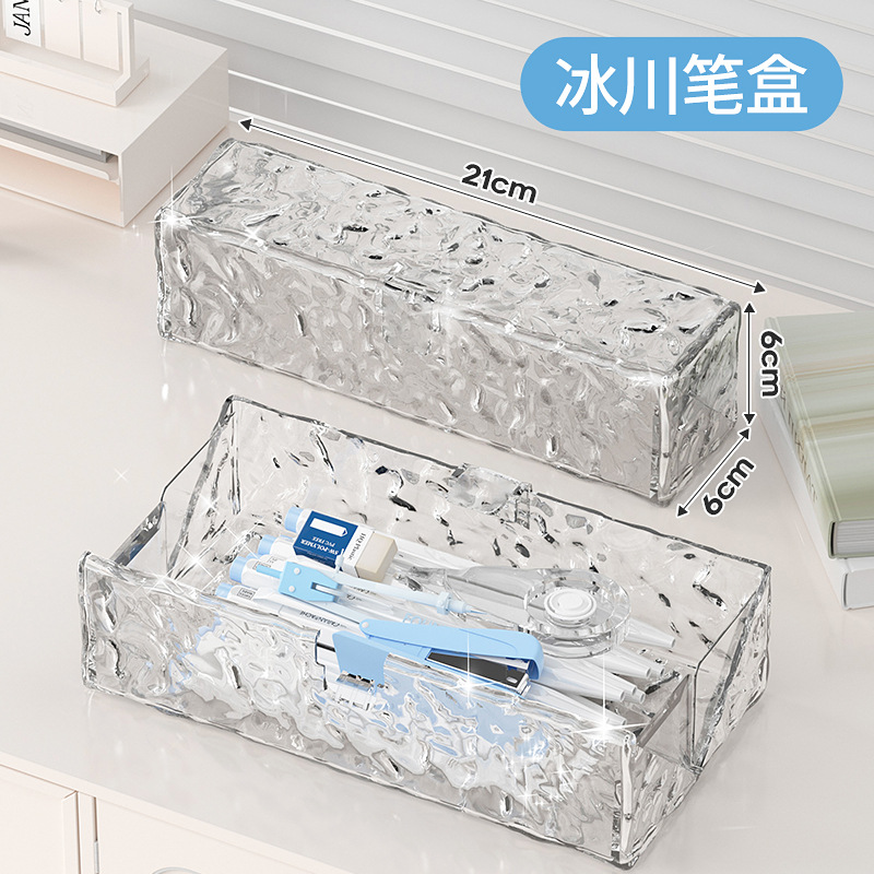 Wusheng 빙하 문구 상자 Ins 스타일 미니멀리스트 투명 펜 상자 소년과 소녀 학생을위한 대용량 다기능 연필 케이스