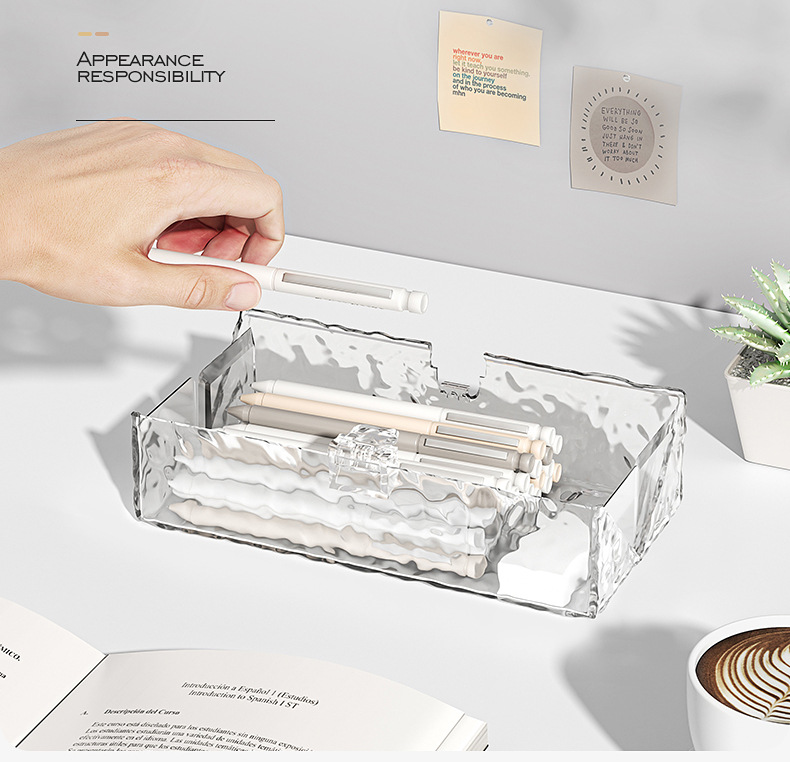 Wusheng 빙하 문구 상자 Ins 스타일 미니멀리스트 투명 펜 상자 소년과 소녀 학생을위한 대용량 다기능 연필 케이스스토어 가기