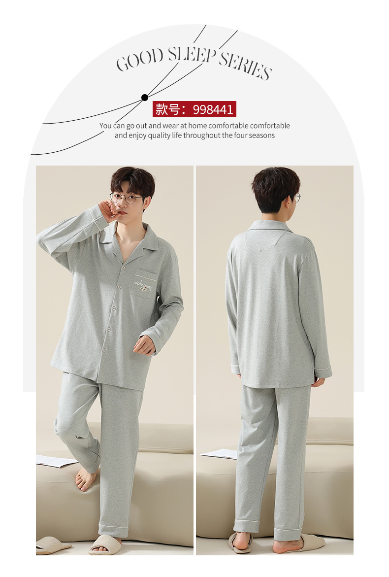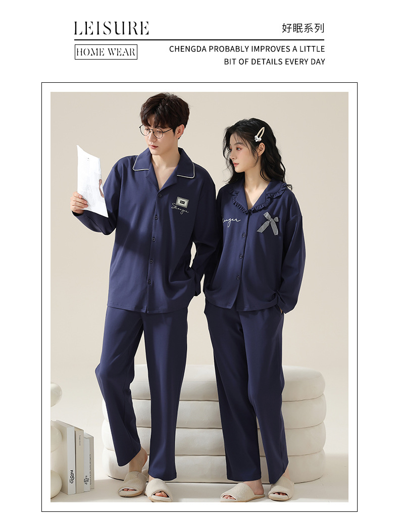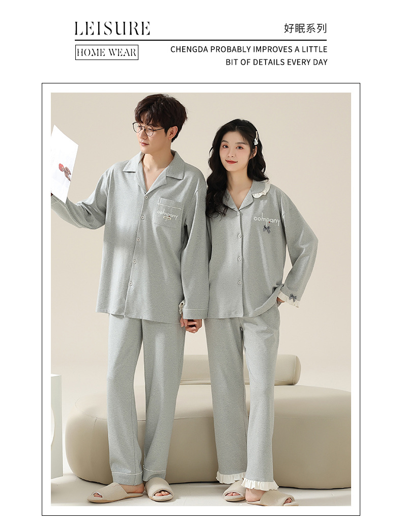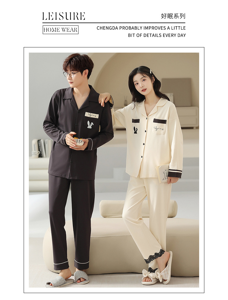 【100% 순면】봄 신상 커플 잠옷 여성용 가을 겨울용 가디건 긴팔 긴바지 남성용 홈웨어 세트