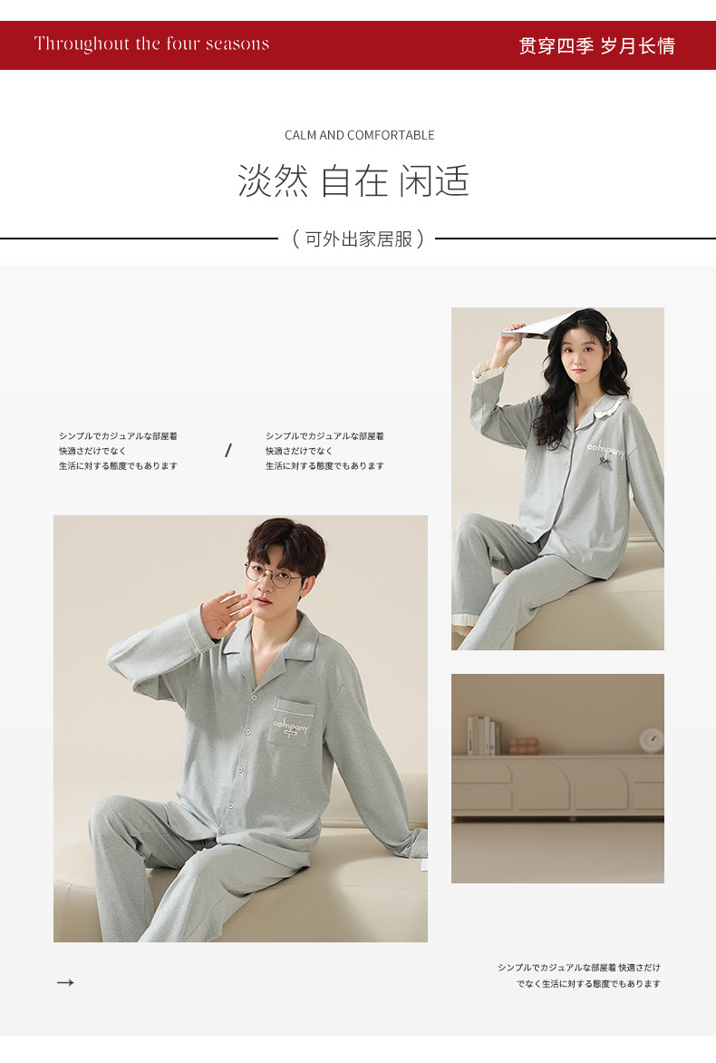 【100% 순면】봄 신상 커플 잠옷 여성용 가을 겨울용 가디건 긴팔 긴바지 남성용 홈웨어 세트스토어 가기