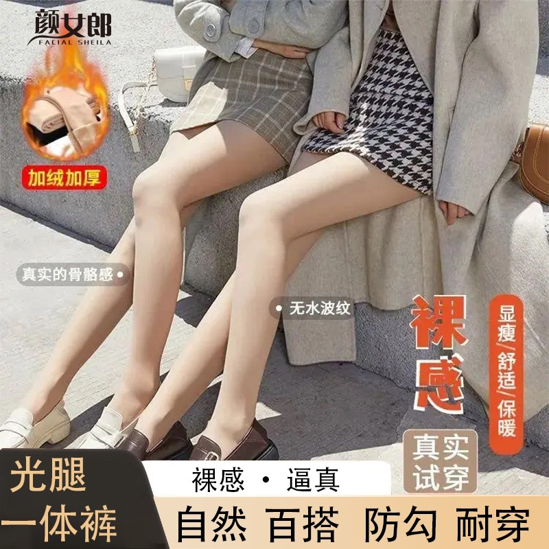 가을과 겨울 기모 두꺼운 살색 여성 원피스 바지 레깅스 따뜻한 가벼운 다리 피부색 유물