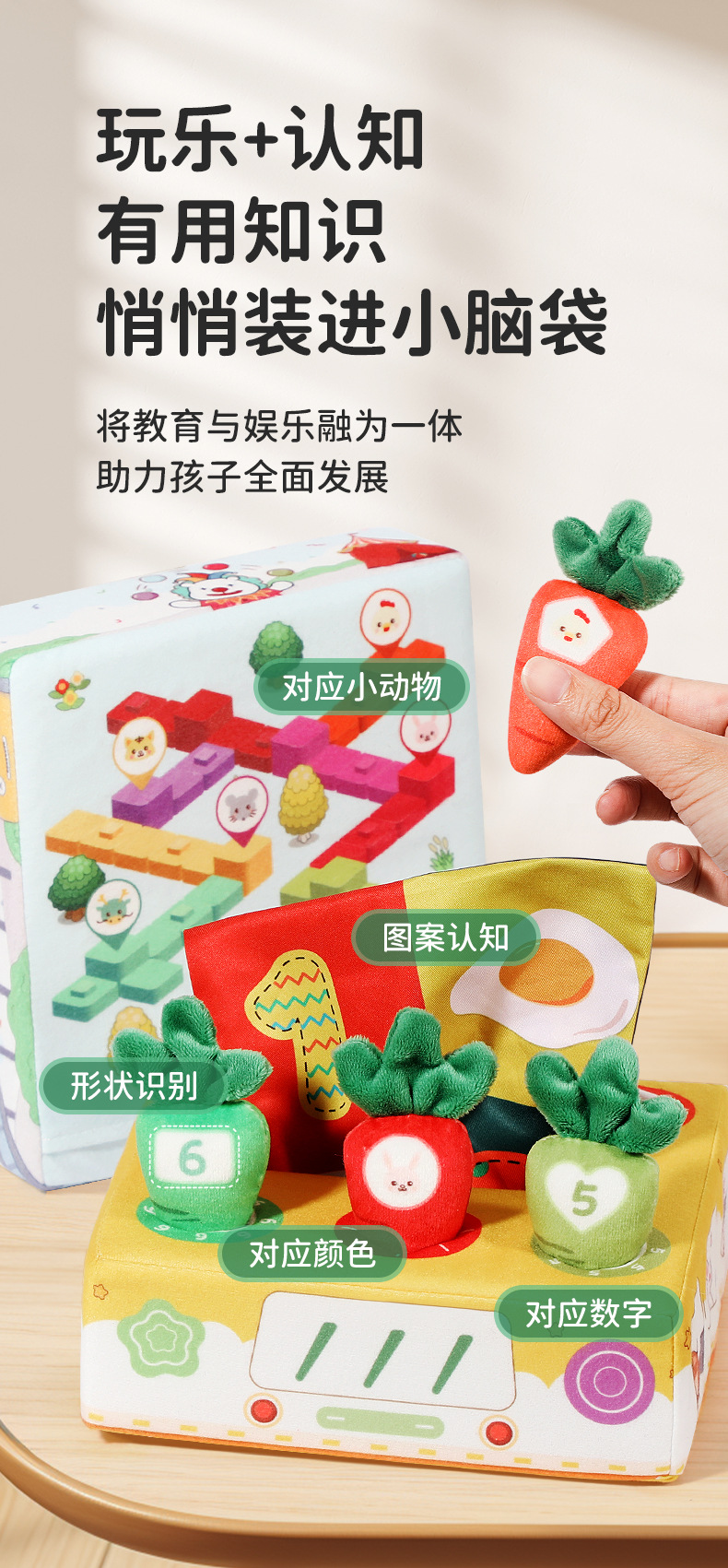 크로스 보더 아기 눈물 티슈 상자 당겨 무 종이 장난감 아기 교육 조기 교육 매칭 진정 장난감