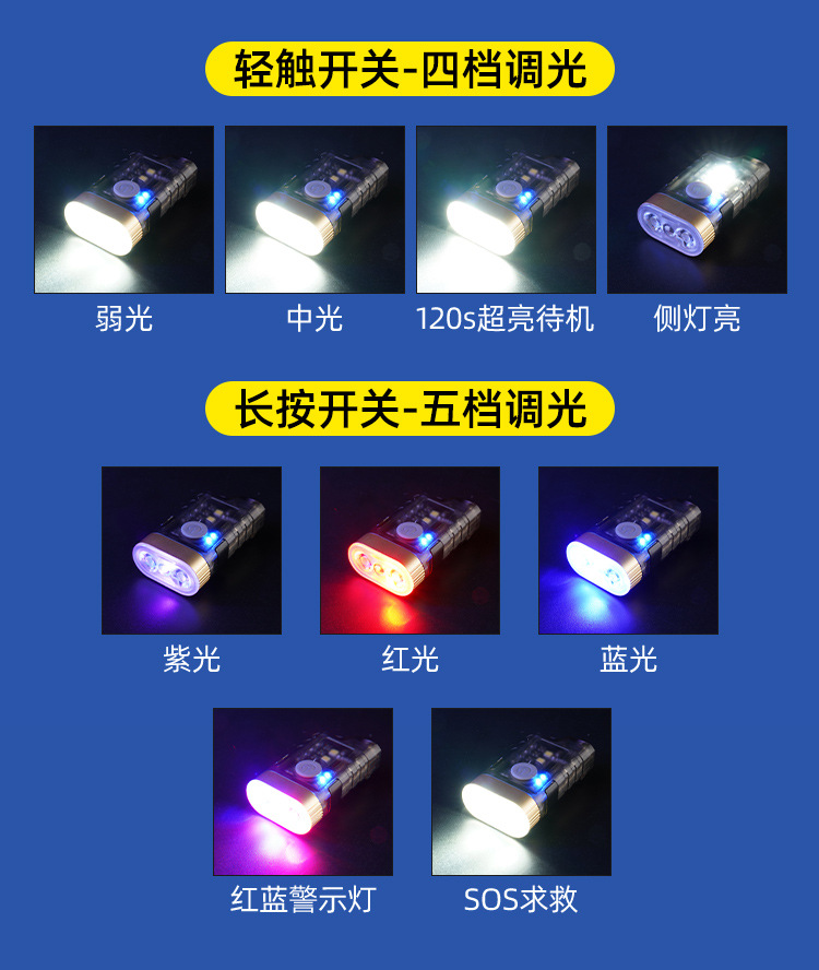 국경 야외 365 휴대용 LED 강한 가벼운 키 체인 라이트 클립 라이트 머니 탐지기 야간 조명 가구 강한 빛 손전등