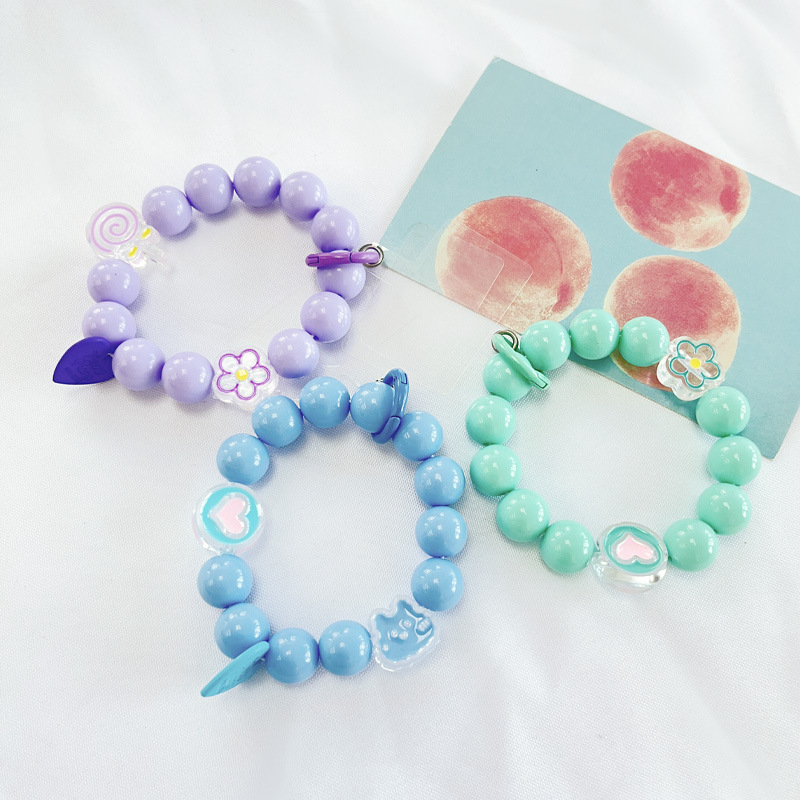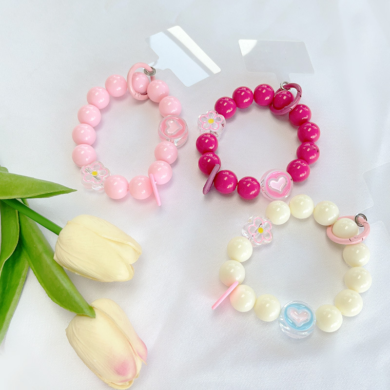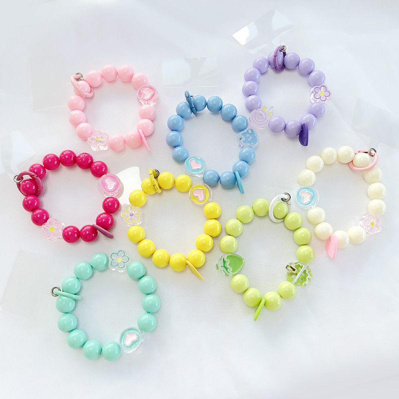 새로운 DIY 아크릴 라운드 비즈 휴대용 체인 페르시 휴대 전화 끈 마카롱 색상 수제 액세서리 키 체인 교수형스토어 가기