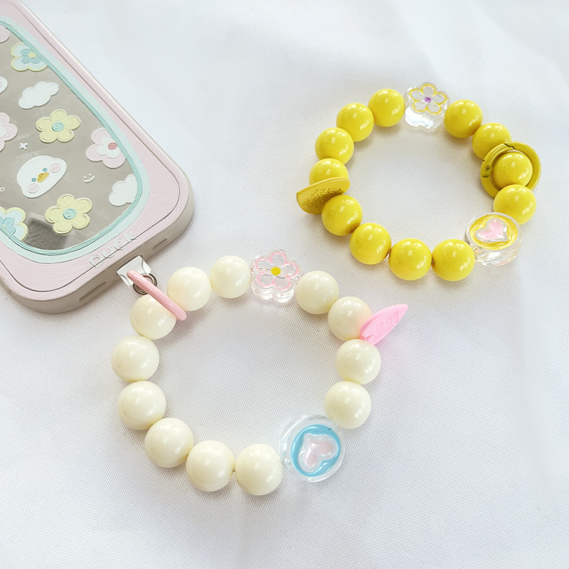 새로운 DIY 아크릴 라운드 비즈 휴대용 체인 페르시 휴대 전화 끈 마카롱 색상 수제 액세서리 키 체인 교수형