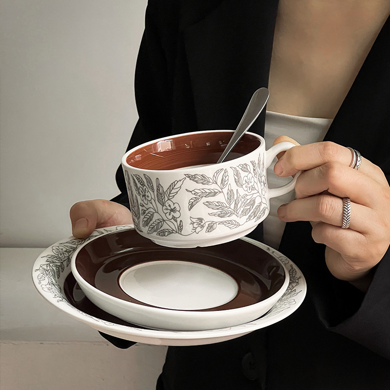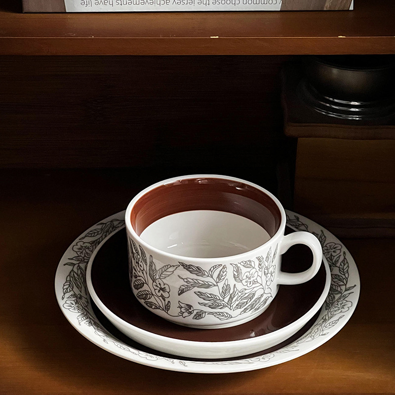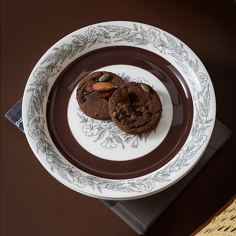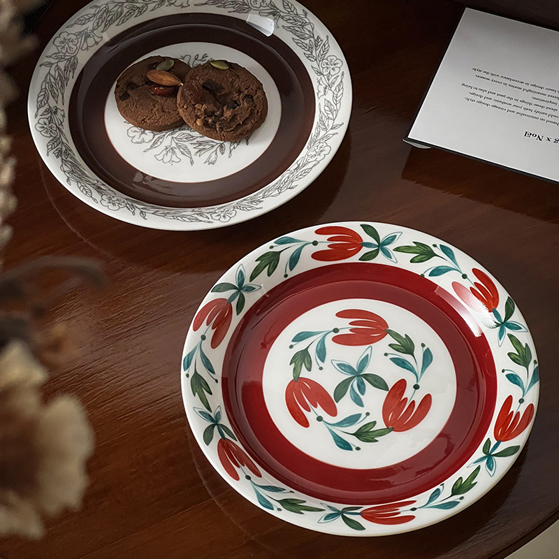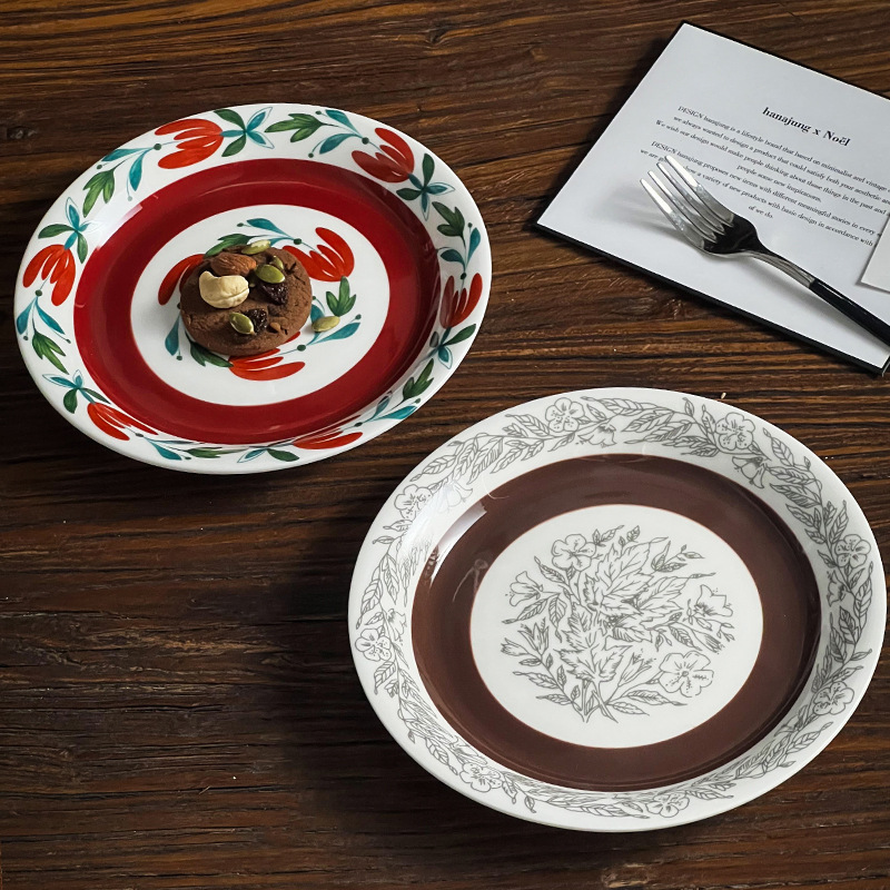 중간 고대 핀란드어 틈새 꽃 세라믹 접시 빈티지 라운드 아침 식사 접시 가정용 접시 디저트 접시 과일 접시스토어 가기