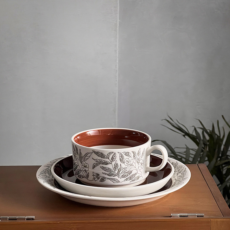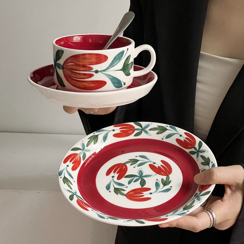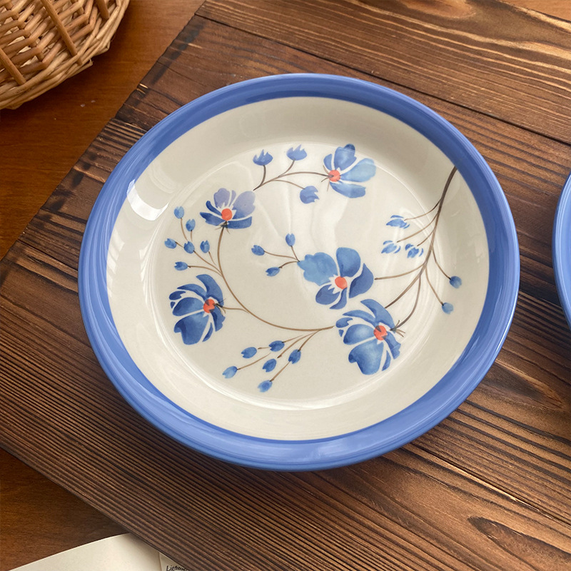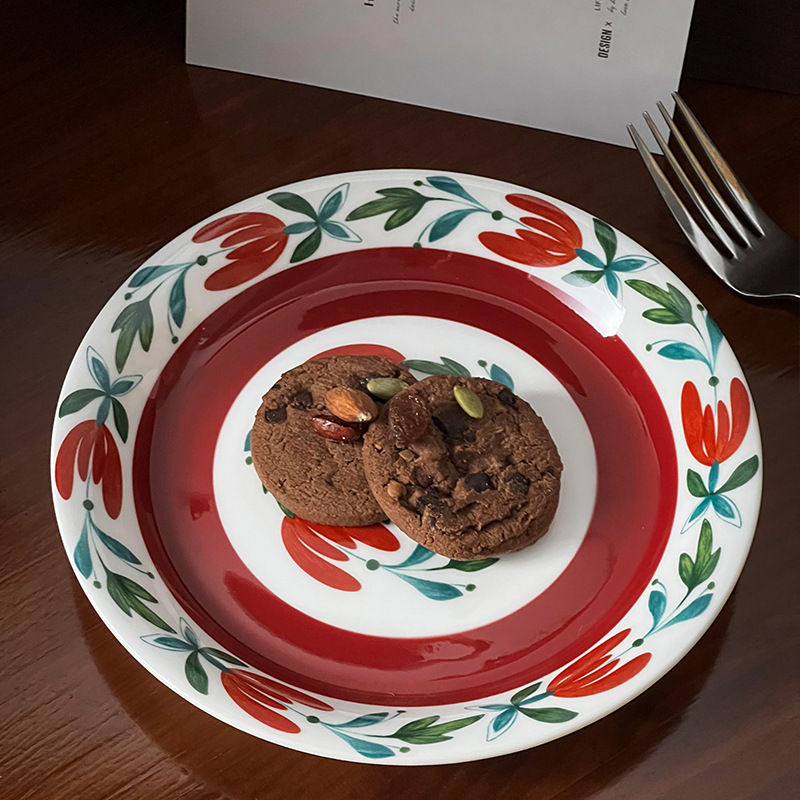중간 고대 핀란드어 틈새 꽃 세라믹 접시 빈티지 라운드 아침 식사 접시 가정용 접시 디저트 접시 과일 접시