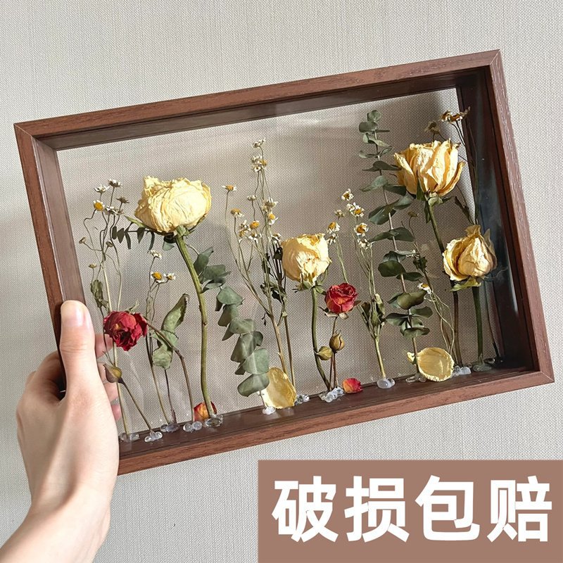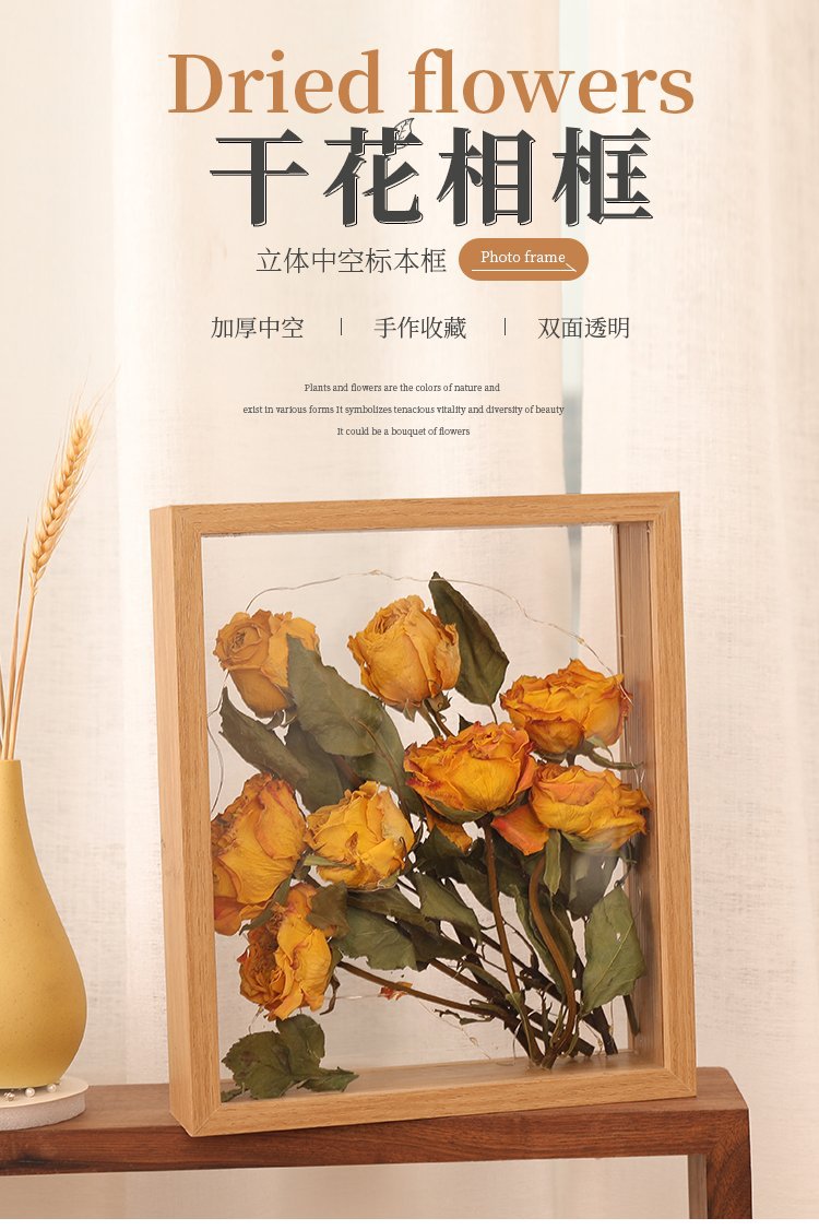 말린 꽃 사진 프레임 수제 DIY 보존 영원한 꽃 장미 3 차원 중공 양면 디스플레이 박스 도매