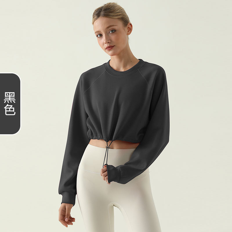 폭발성 요가 긴 소매 스포츠 스웨트 셔츠 캐주얼 올 매치 루즈 탑 야외 달리기 사이클링 훈련 드로우 스트링 재킷