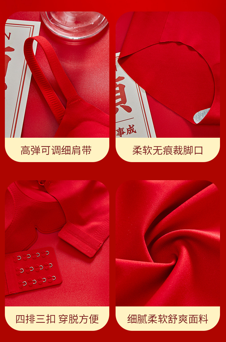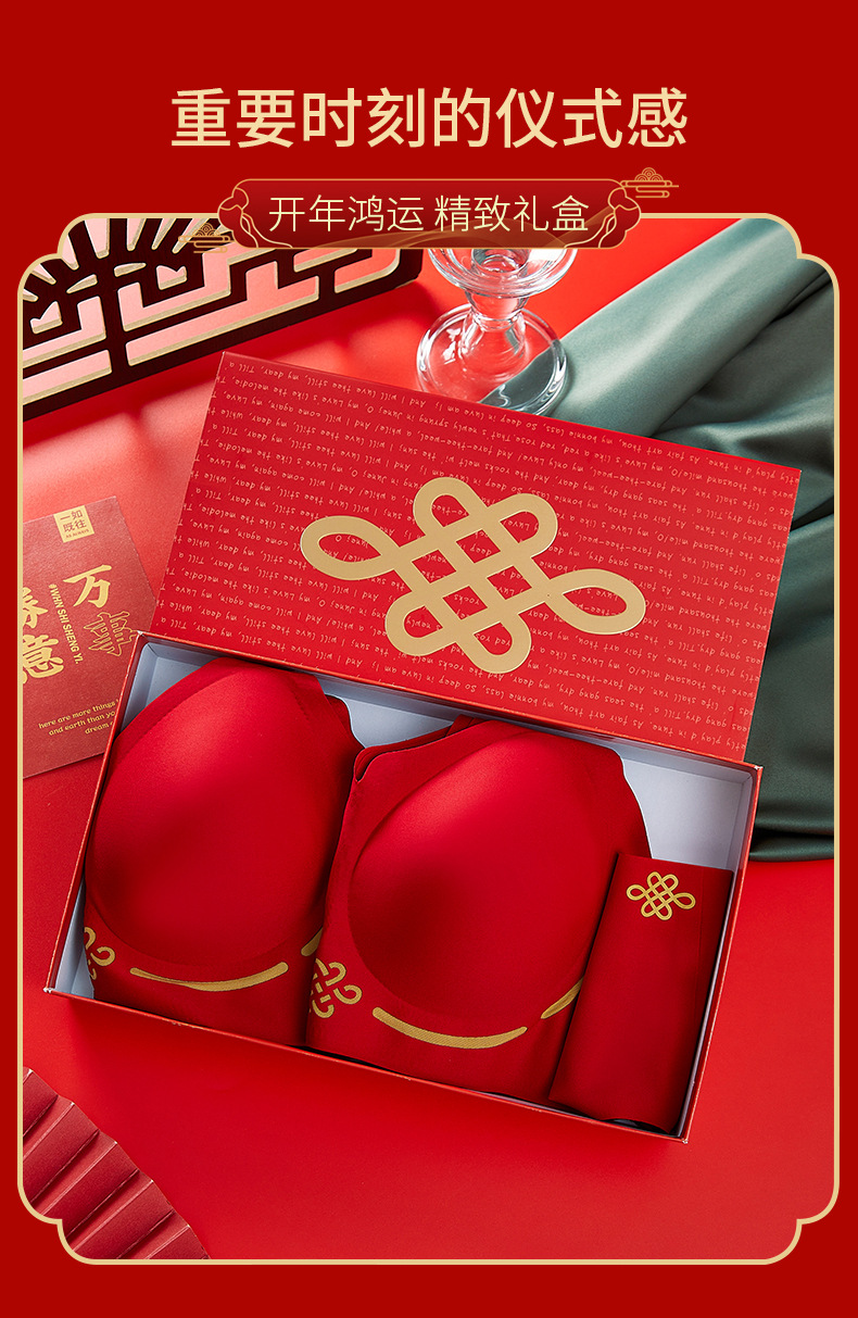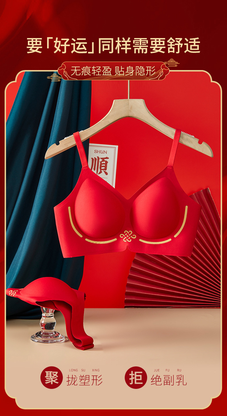 빨간 축제 결혼식 큰 빨간 브래지어 세트 박스형 속옷 여자의 생활 년 여성을위한 원활한 얇은 푸시 업 브래지어스토어 가기