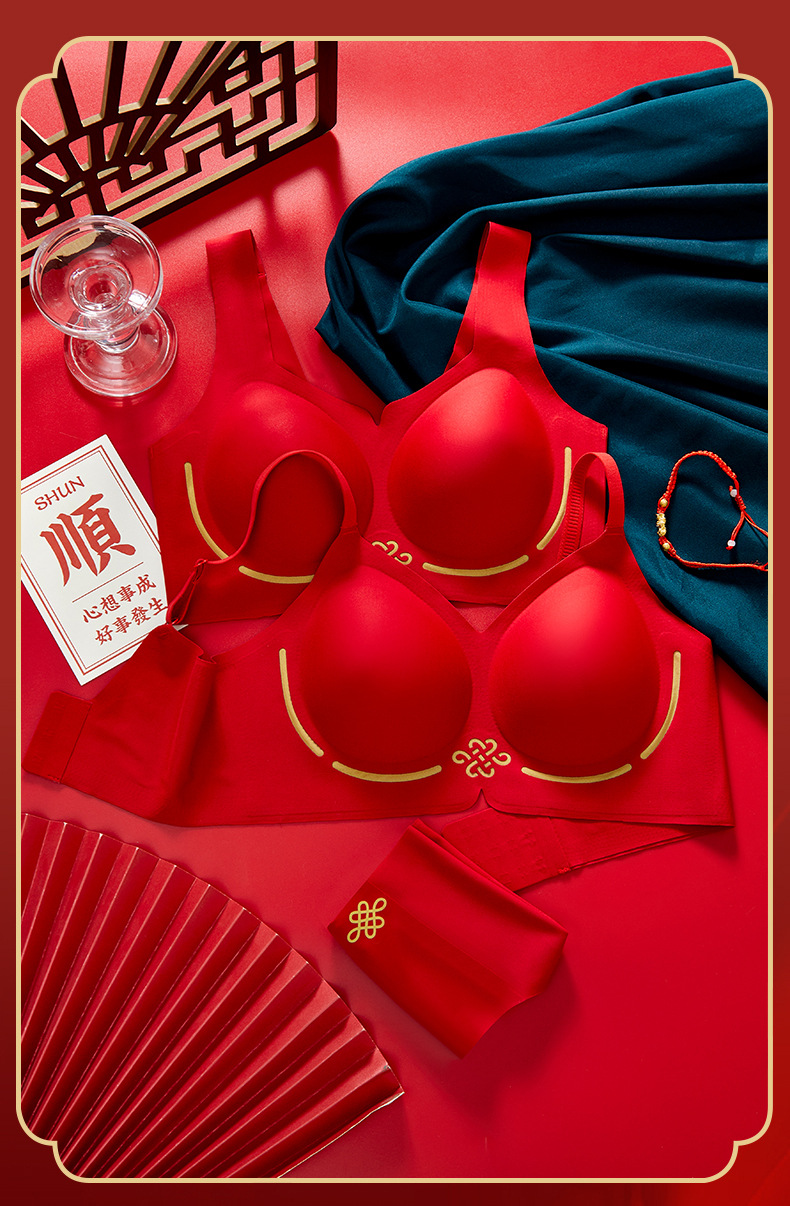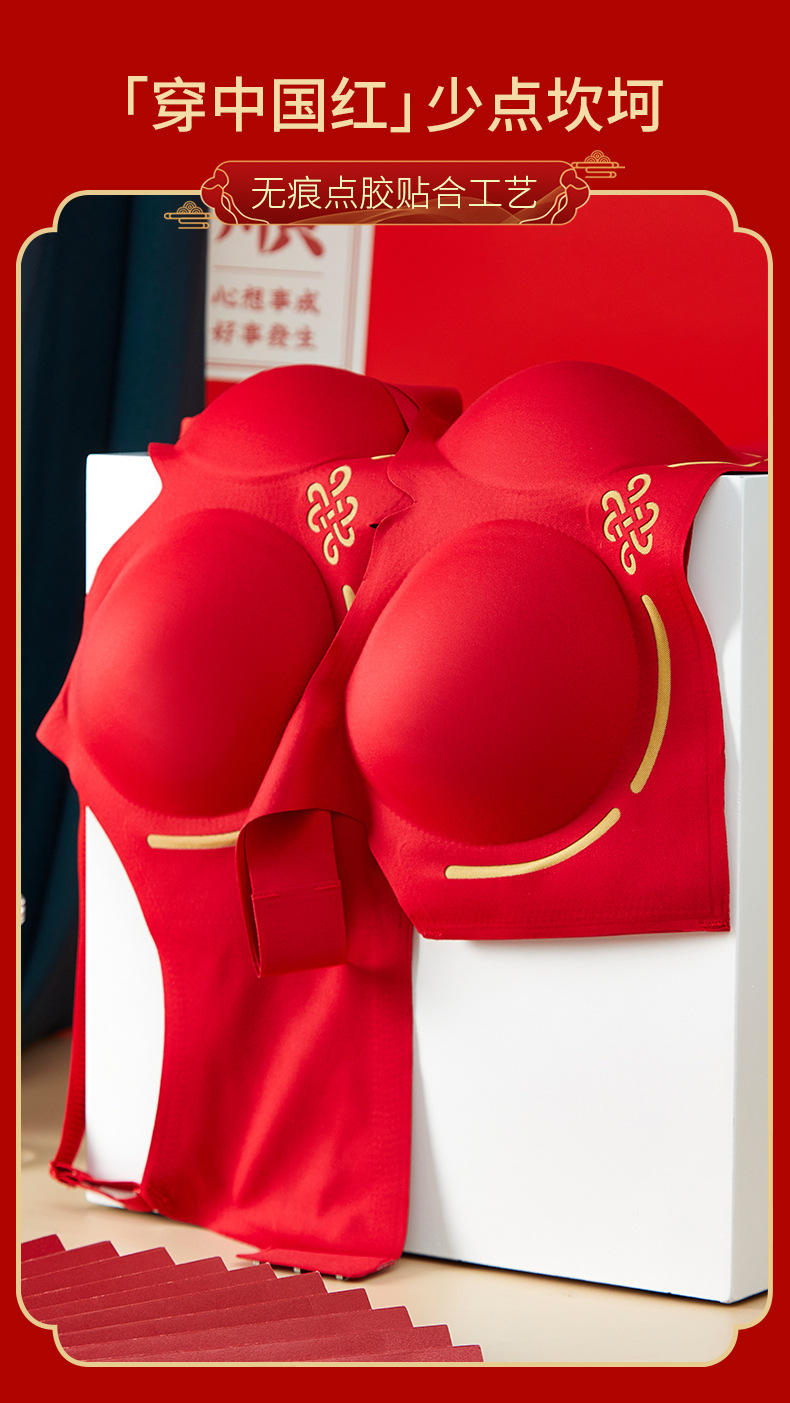 빨간 축제 결혼식 큰 빨간 브래지어 세트 박스형 속옷 여자의 생활 년 여성을위한 원활한 얇은 푸시 업 브래지어