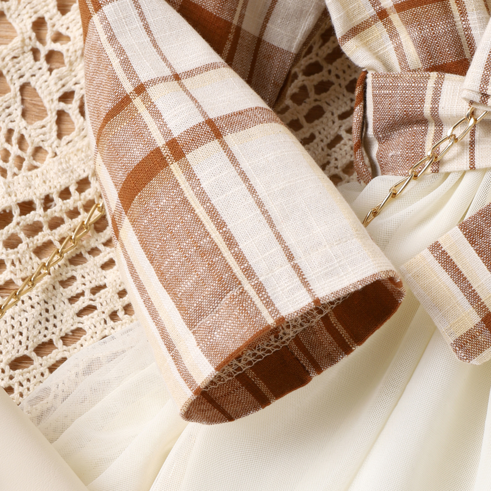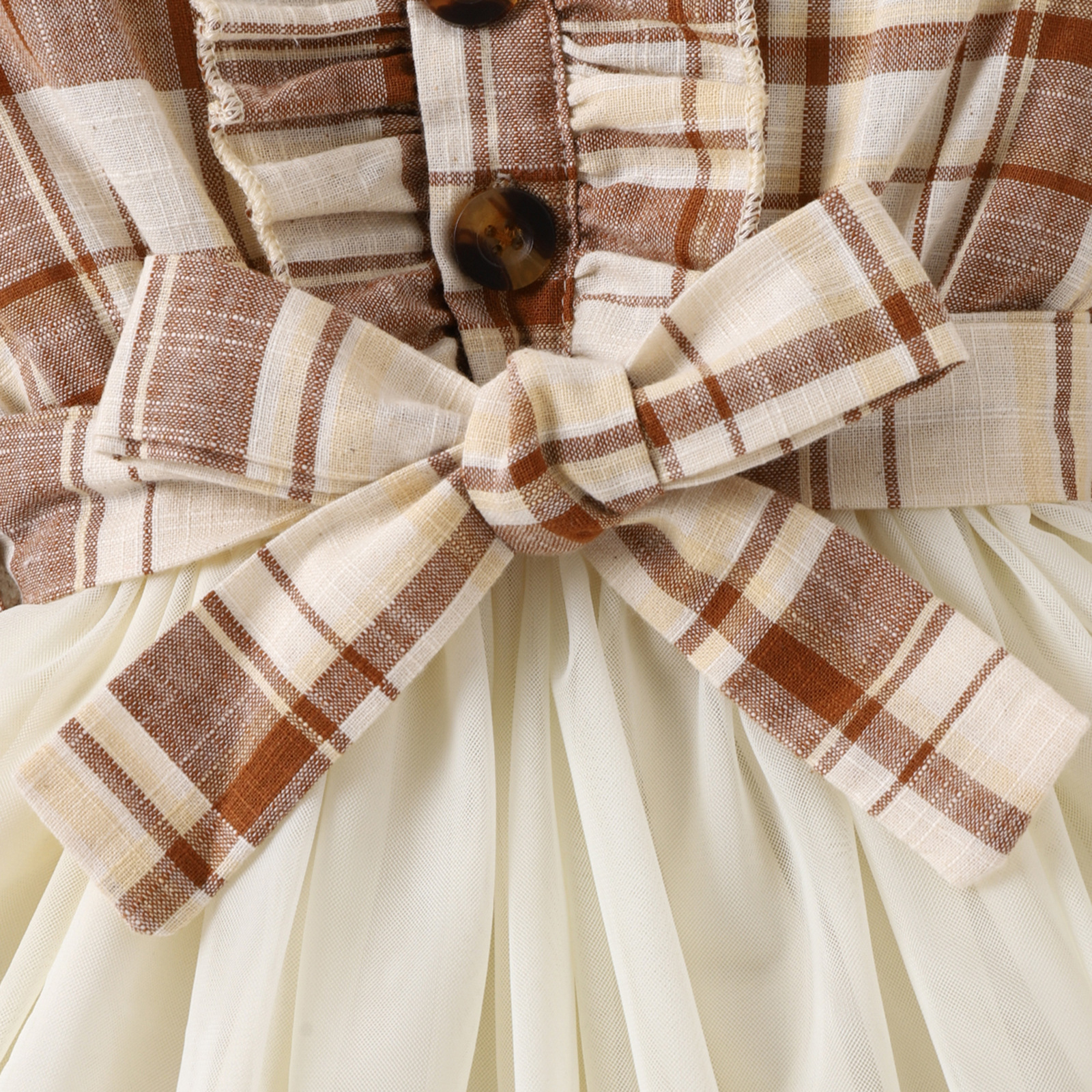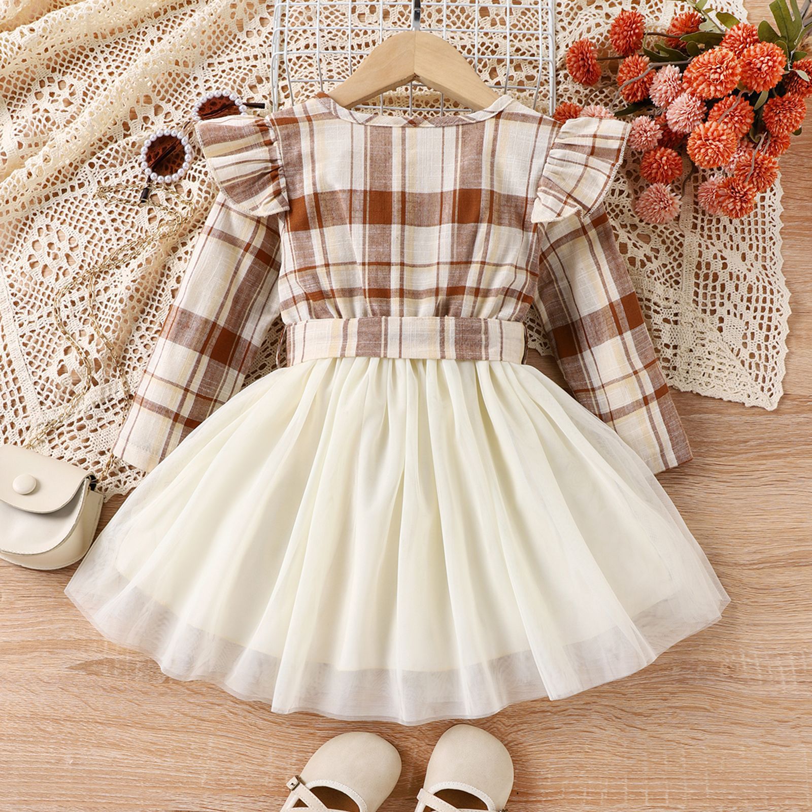 Baosheng 아동복 크로스 보더 유럽과 미국 소녀 가을과 겨울 원피스 새로운 격자 무늬 스티치 메쉬 스커트 벨트 3 종 세트