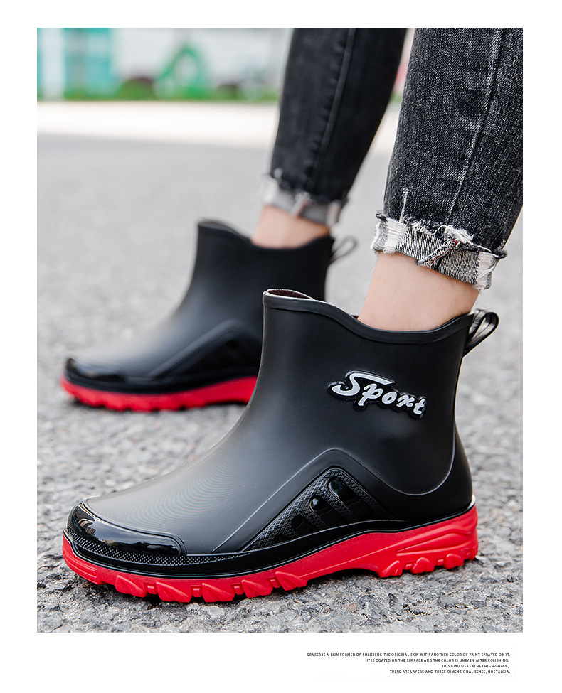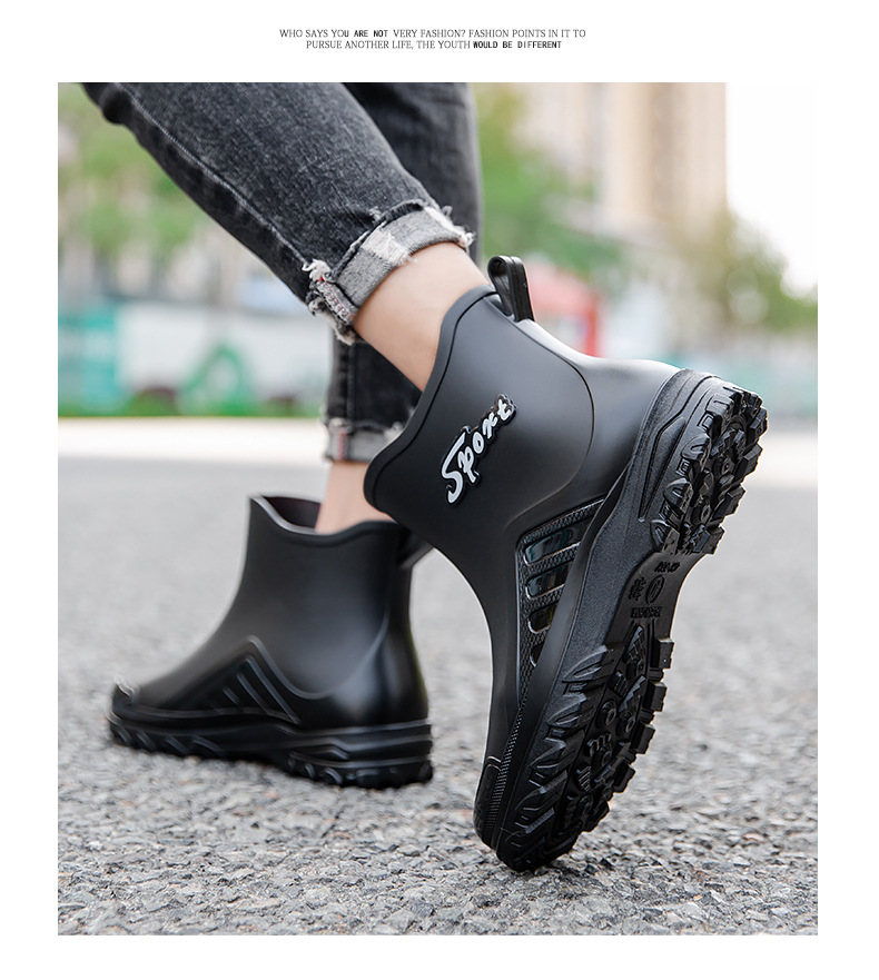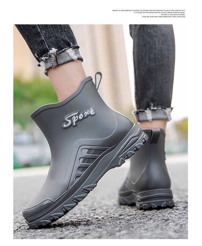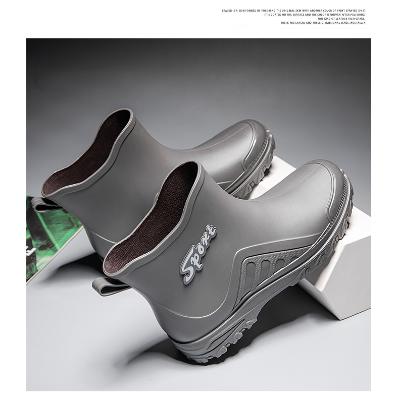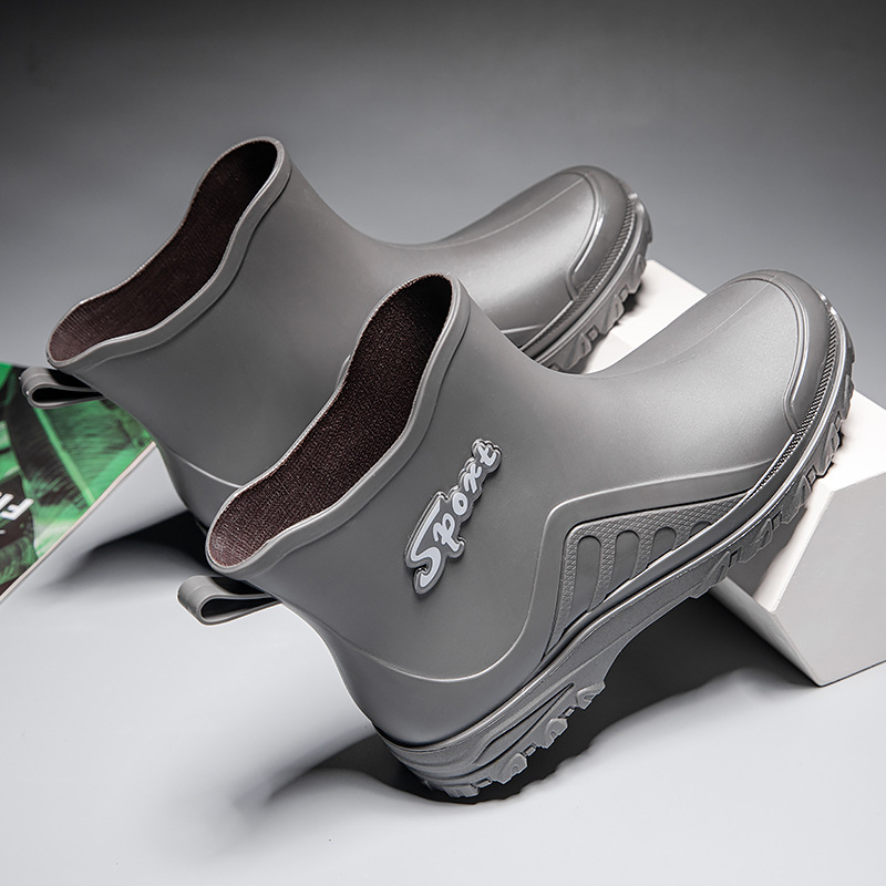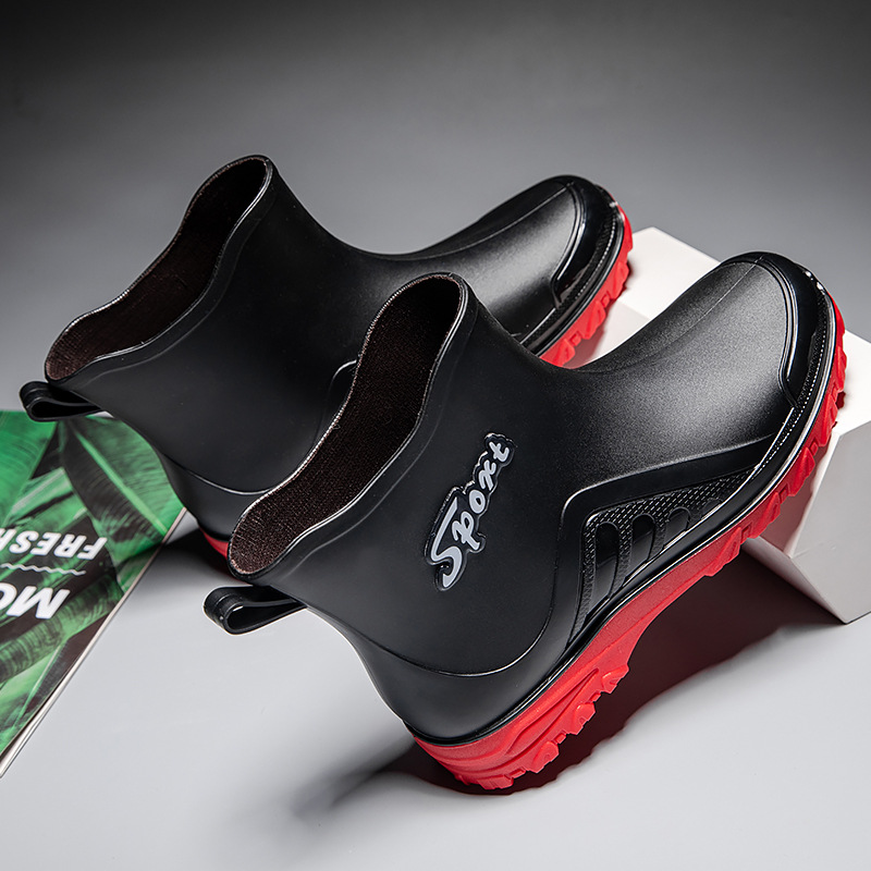 패션 짧은 장화 남자의 성인 새로운 장화 겉옷 경량 내마모성 고무 신발 주방 미끄럼 방지 로우 탑 방수 신발