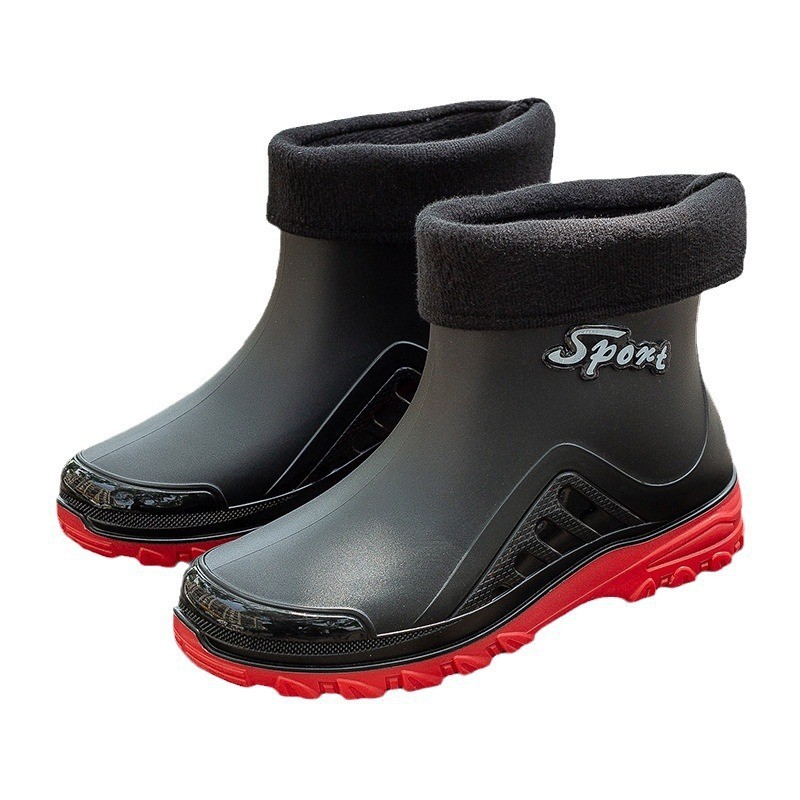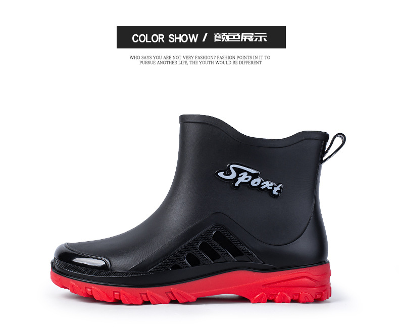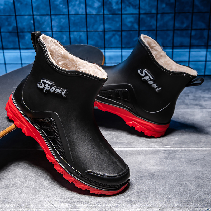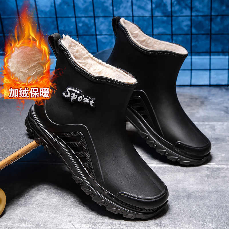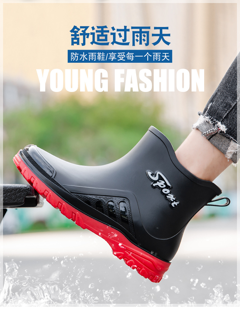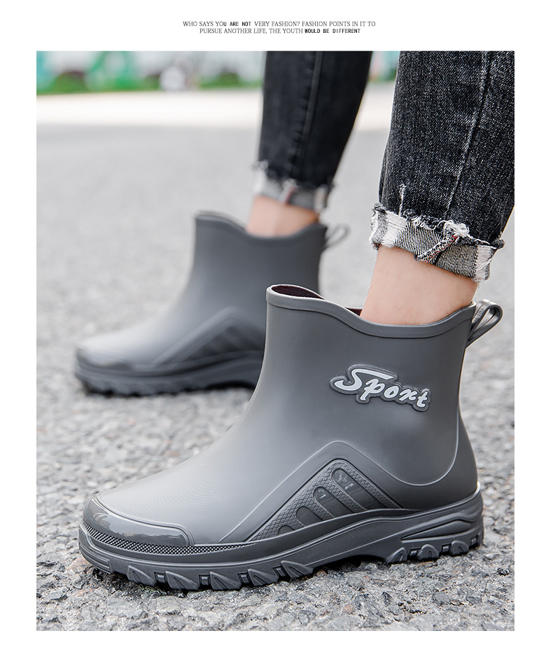 패션 짧은 장화 남자의 성인 새로운 장화 겉옷 경량 내마모성 고무 신발 주방 미끄럼 방지 로우 탑 방수 신발
