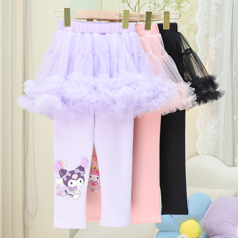2024 년 새 걸스 레깅스 봄 · 가을 아우터 착용 바지 스커트 메쉬 한국 가짜 투피스 하이 허리 트렌디 어린이 컬롯