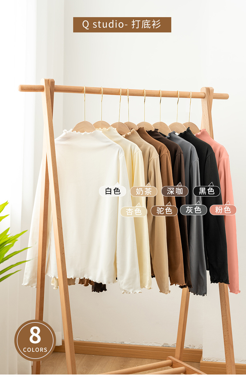 가을 겨울 여성용 하프 터틀넥 독일 벨벳 밑단 셔츠 한국식 컬링 내부 긴팔 양면 기모 따뜻한 탑스토어 가기