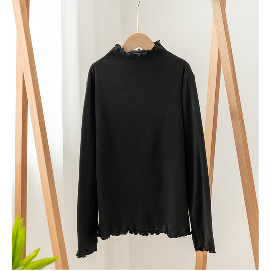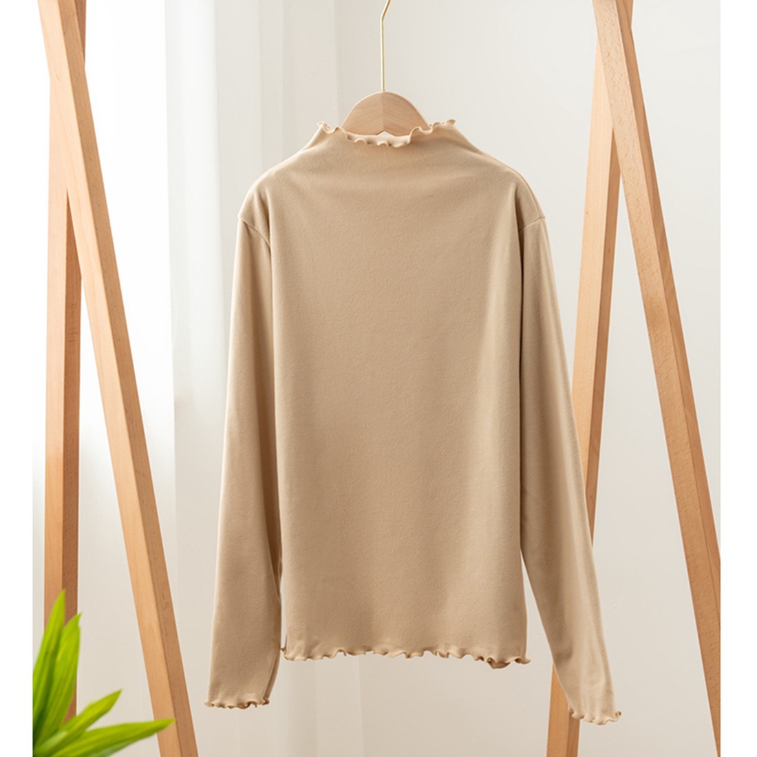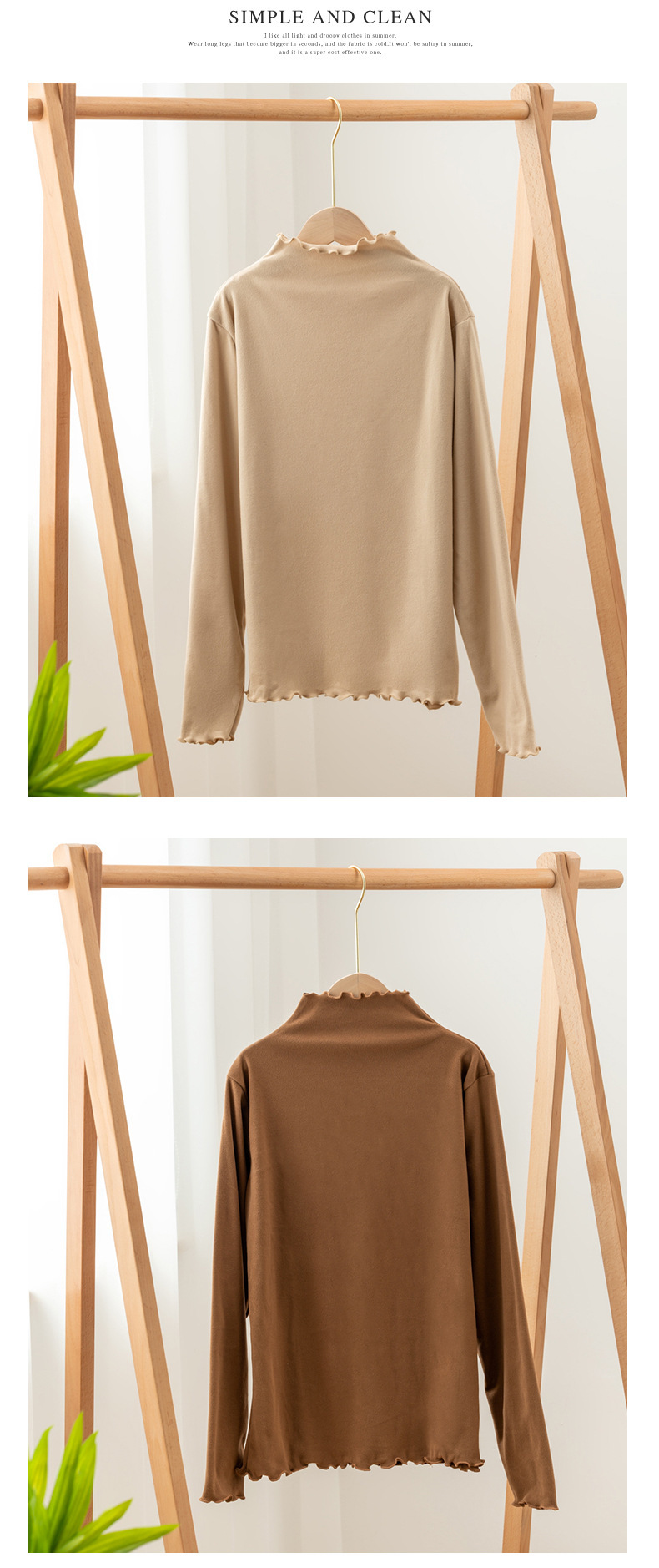 가을 겨울 여성용 하프 터틀넥 독일 벨벳 밑단 셔츠 한국식 컬링 내부 긴팔 양면 기모 따뜻한 탑