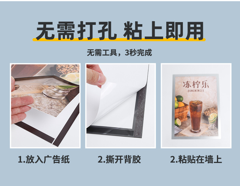 자기 사진 프레임 포스터 프레임 광고 디스플레이 스티커 비즈니스 라이센스 프레임 없음 펀치 a3a4 벽 인증서 보호 커버스토어 가기