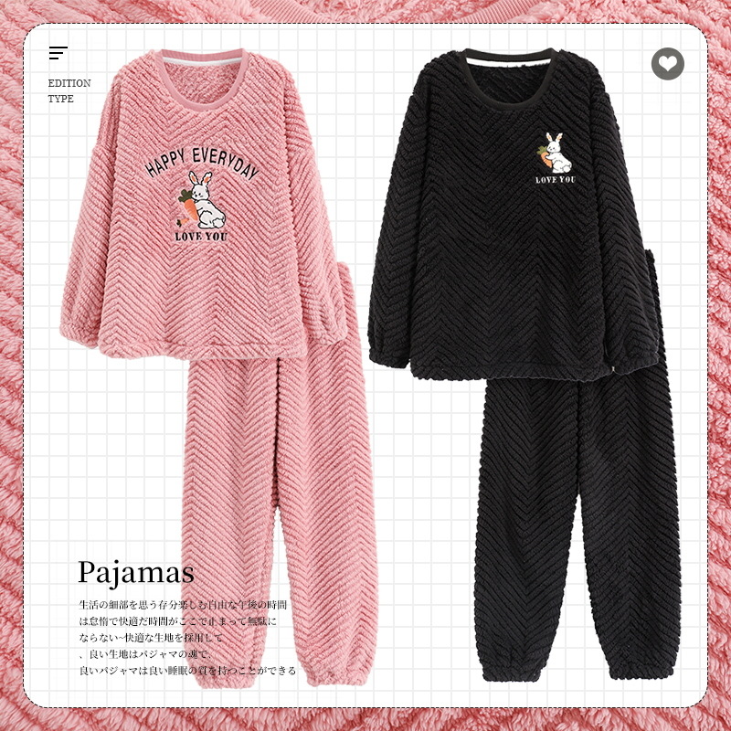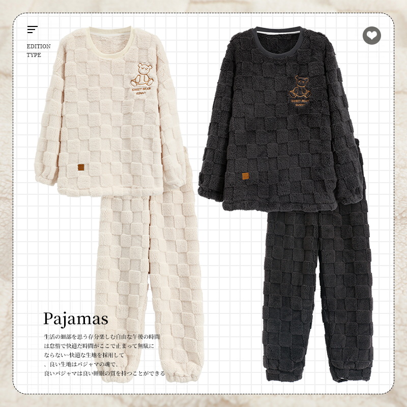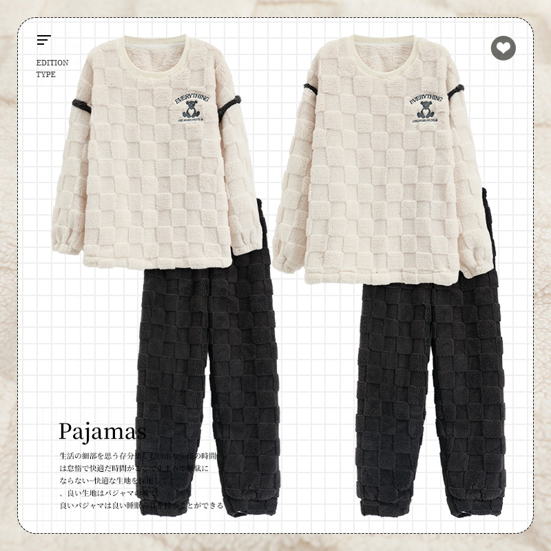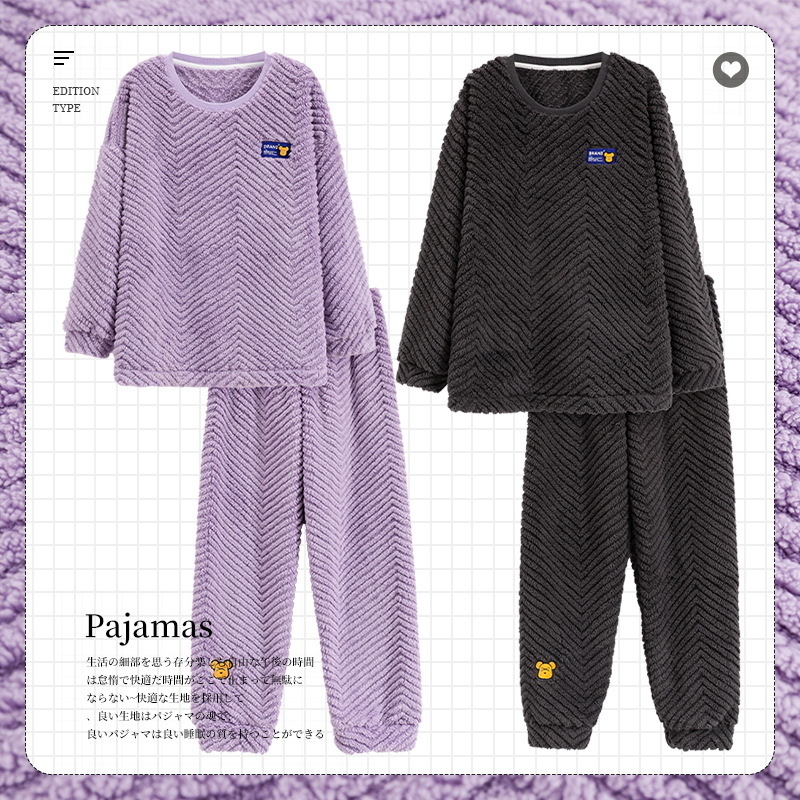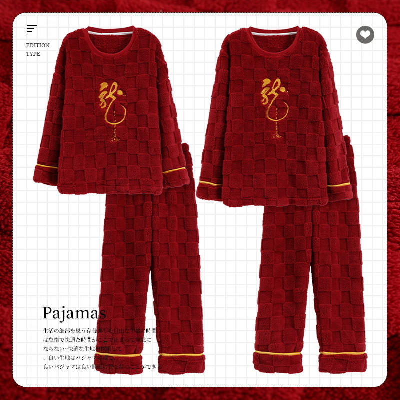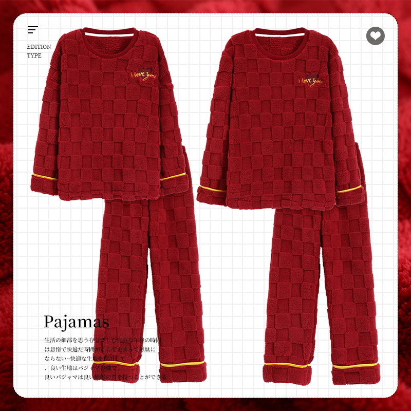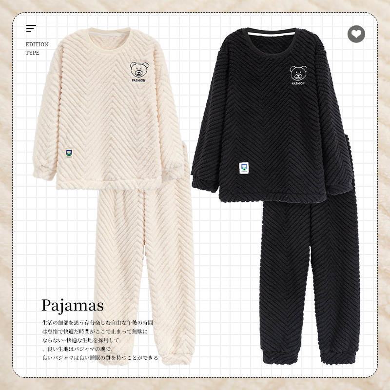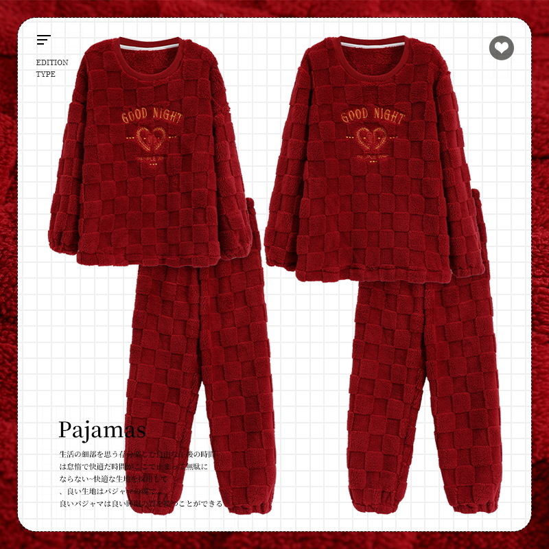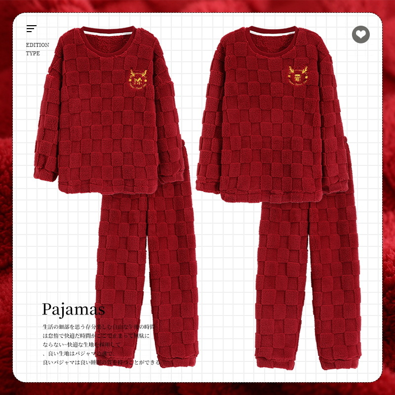 산호 양털 커플 잠옷 여자의 겨울 두꺼운 기모 2023 새로운 둥근 목 겨울 남자의 가정 옷 세트 여자스토어 가기