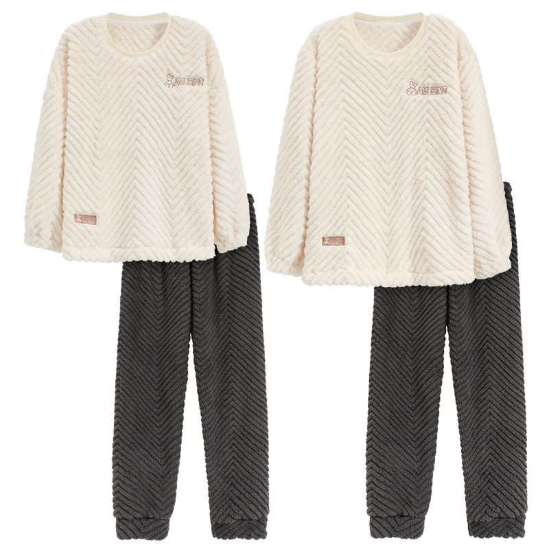 산호 양털 커플 잠옷 여자의 겨울 두꺼운 기모 2023 새로운 둥근 목 겨울 남자의 가정 옷 세트 여자