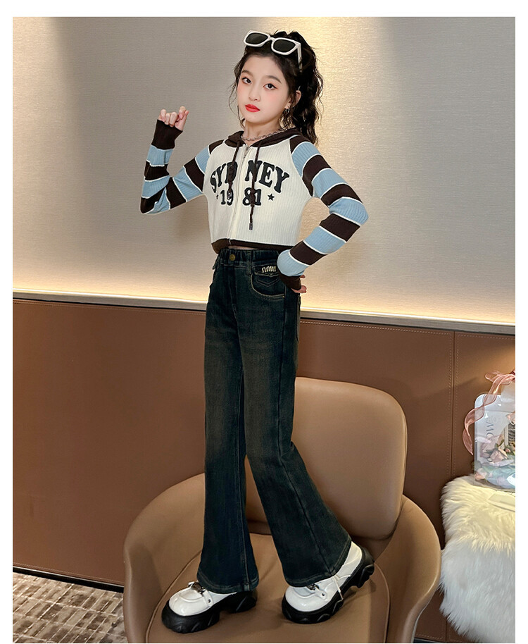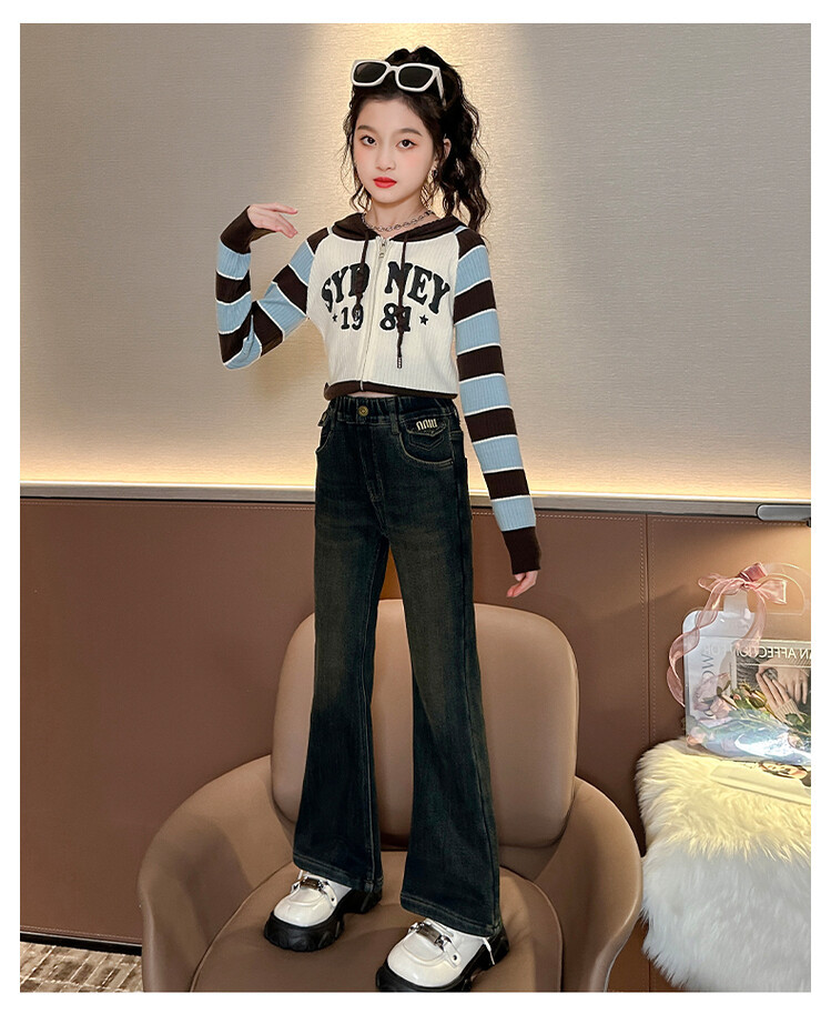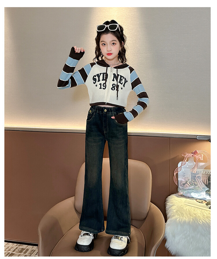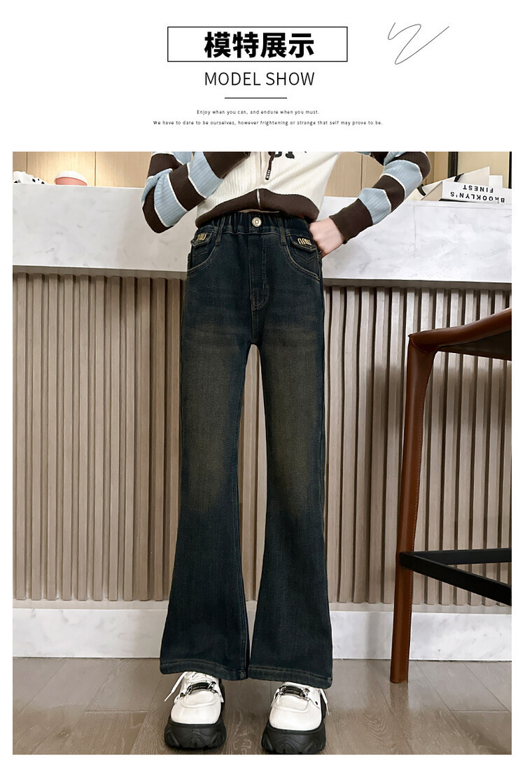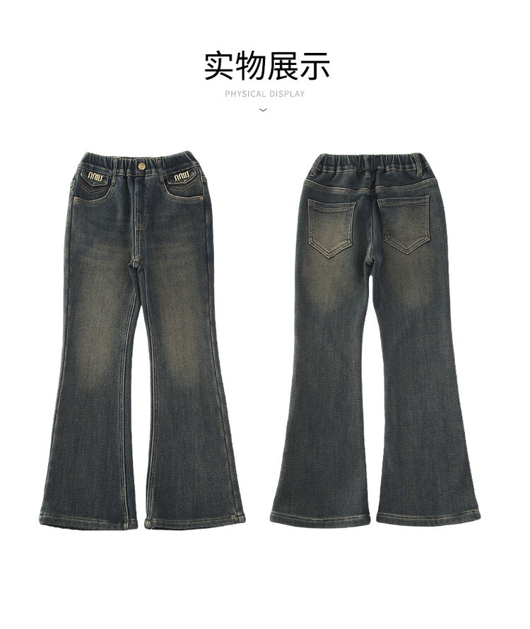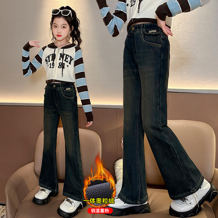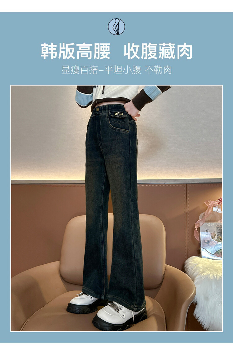 여아 기모 바지 느슨한 청바지 2023 가을과 겨울 새로운 부드러운 두꺼운 소녀 캐주얼 와이드 레그 팬츠스토어 가기