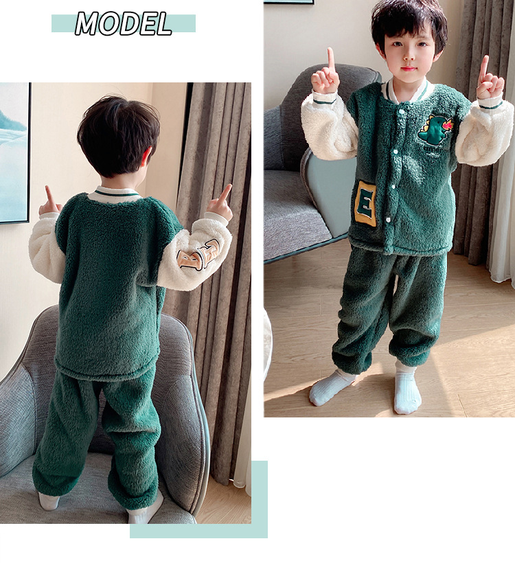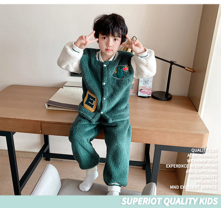 어린이 산호 양털 잠옷 소년 10 가을과 겨울 따뜻한 만화 10 세 플란넬 소년은 밖에서 집 옷을 입을 수 있습니다스토어 가기