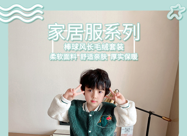 어린이 산호 양털 잠옷 소년 10 가을과 겨울 따뜻한 만화 10 세 플란넬 소년은 밖에서 집 옷을 입을 수 있습니다