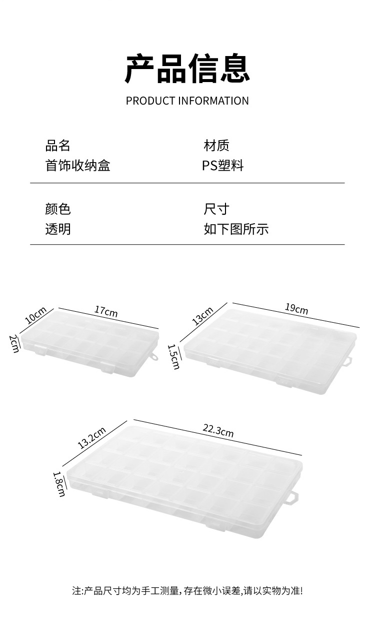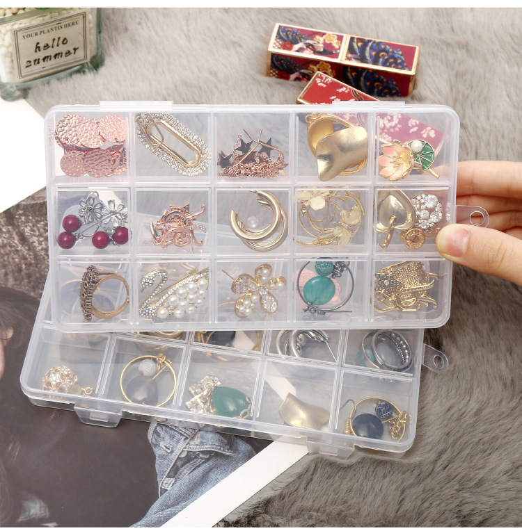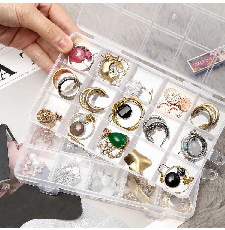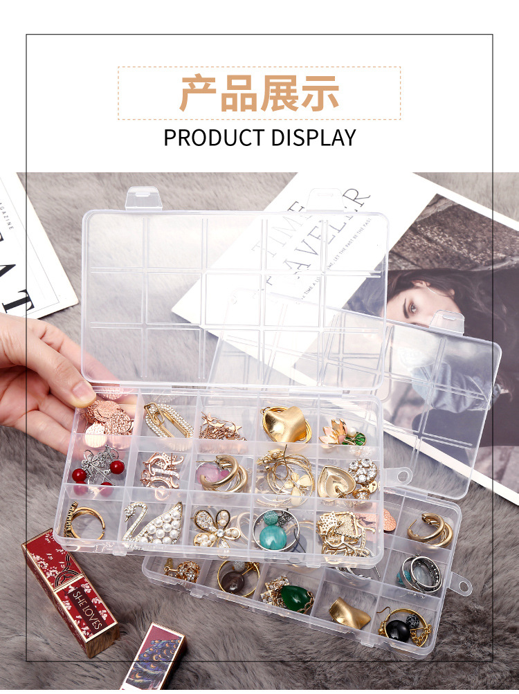 투명 플라스틱 보관 상자 마무리 귀걸이 분리 가능한 보석 상자 마무리 보관 멀티 그리드 보석 상자 도매스토어 가기