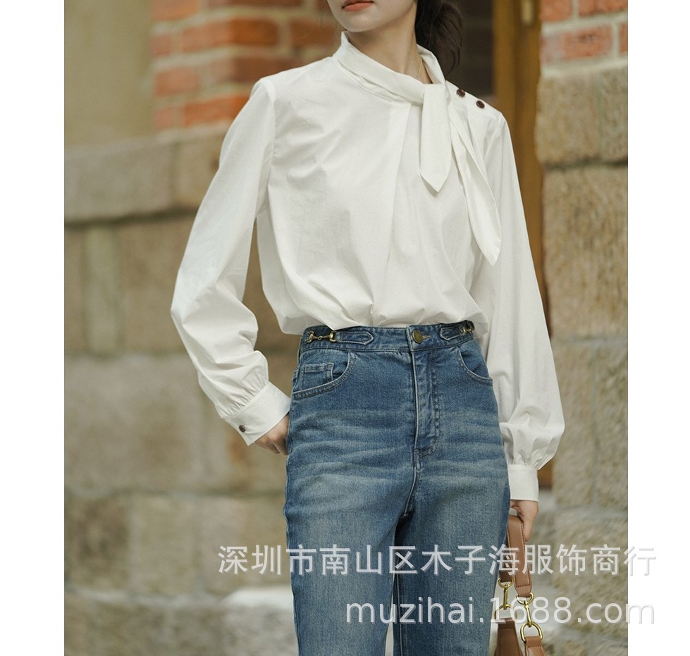 솔리터 프렌치 텐셀 혼방 긴팔 셔츠 2023 가을 새로운 틈새 시크 느슨한 스택 셔츠