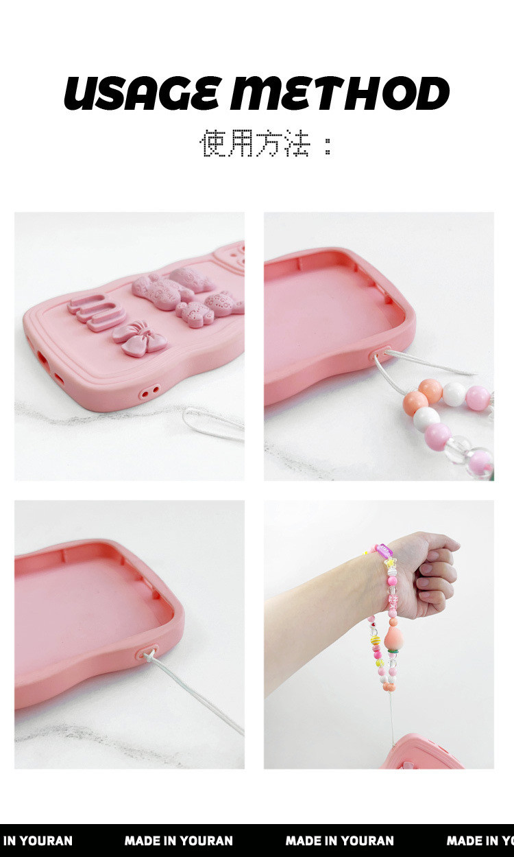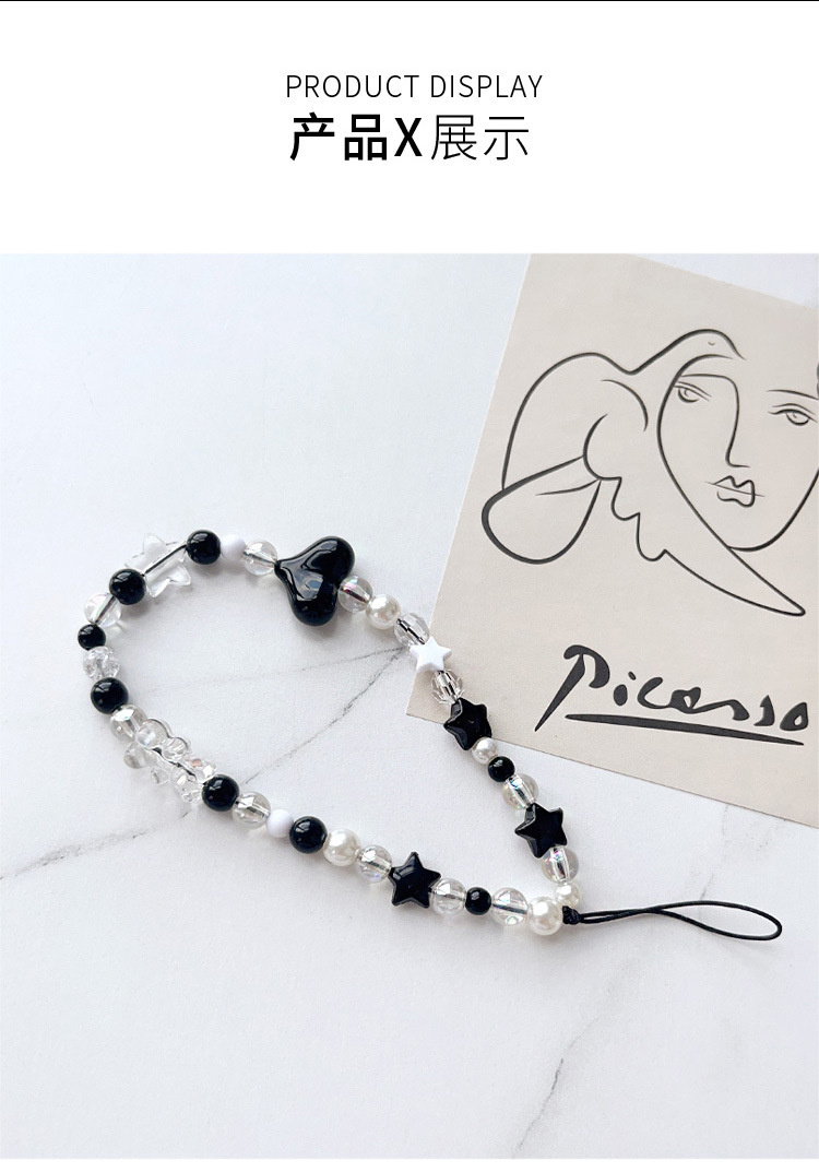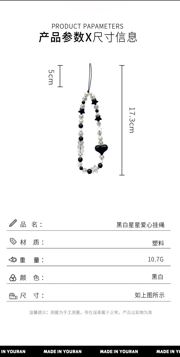 흑백 스타 사랑 휴대 전화 끈 진주 구슬 크리스탈 곰 휴대 전화 끈 짧은 휴대 전화 교수형 핸드 로프스토어 가기