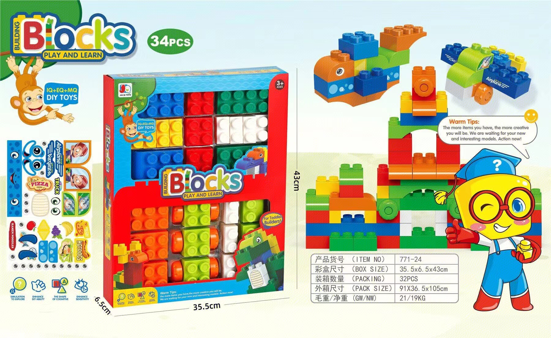 어린이 조립 퍼즐 빌딩 블록 큰 입자 조립 빌딩 블록 DIY 아기 조기 교육 조립 장난감 창 선물 상자스토어 가기