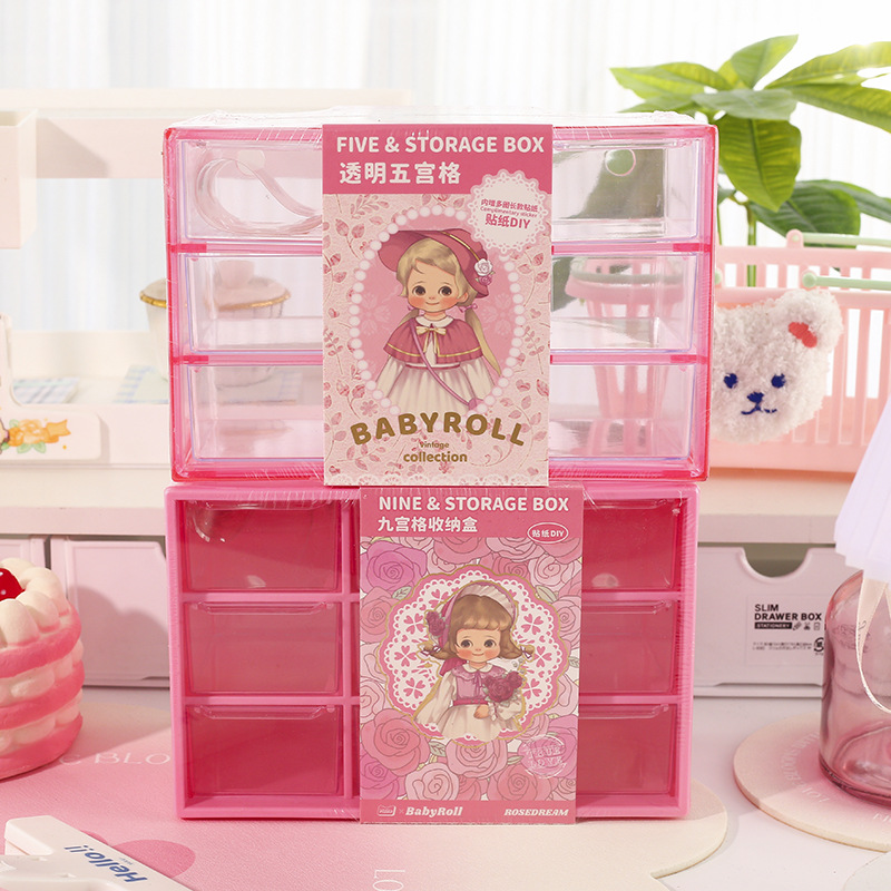 Jiugongge 보관함 계란 롤 자매 장미 매너 귀여운 소녀 학생 데스크탑 5 칸 서랍 보관함