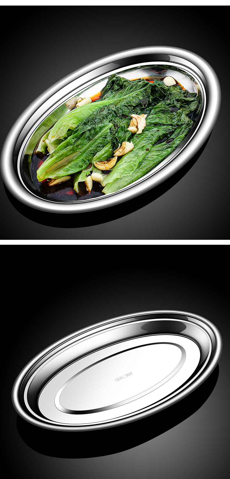 음식 급료 304 스테인레스 스틸 생선 접시 가정용 생선 특수 접시 타원형 생선 긴 접시 큰 접시스토어 가기