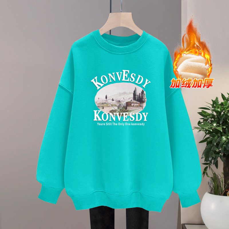 패션 스웨트 셔츠 여성의 겨울 2023 새로운 폭발 봄과 가을 모자 크루넥 기모 두꺼운 겨울 플러스 사이즈 재킷스토어 가기