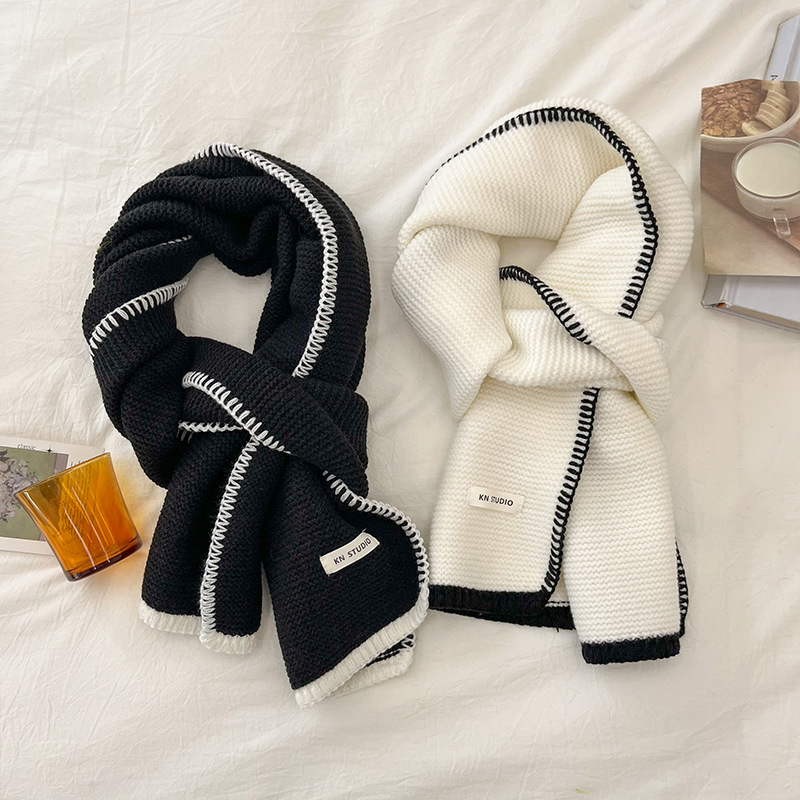 겨울 심플 캐주얼 패션 모든 매치 고급 스카프 한국 니트 편안한 따뜻한 개인 국경 목 보호 스카프스토어 가기