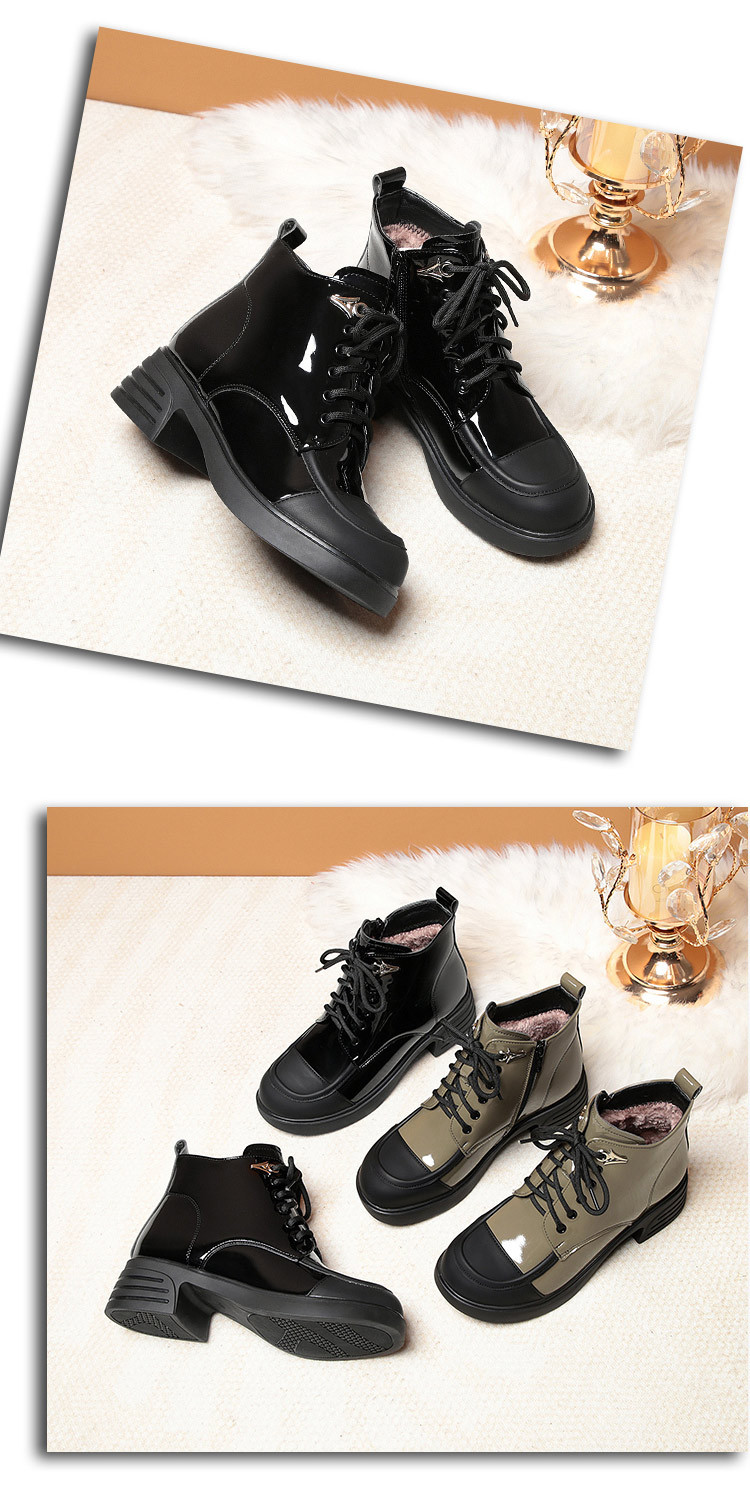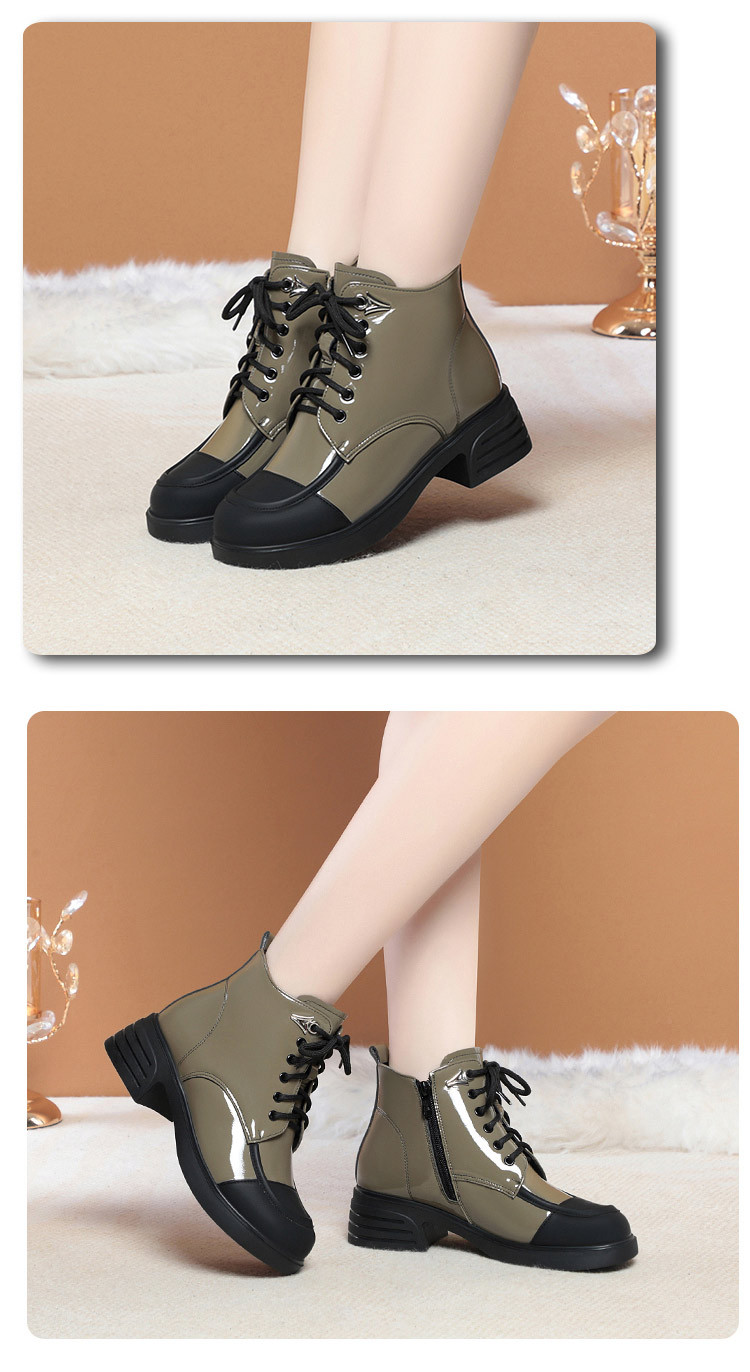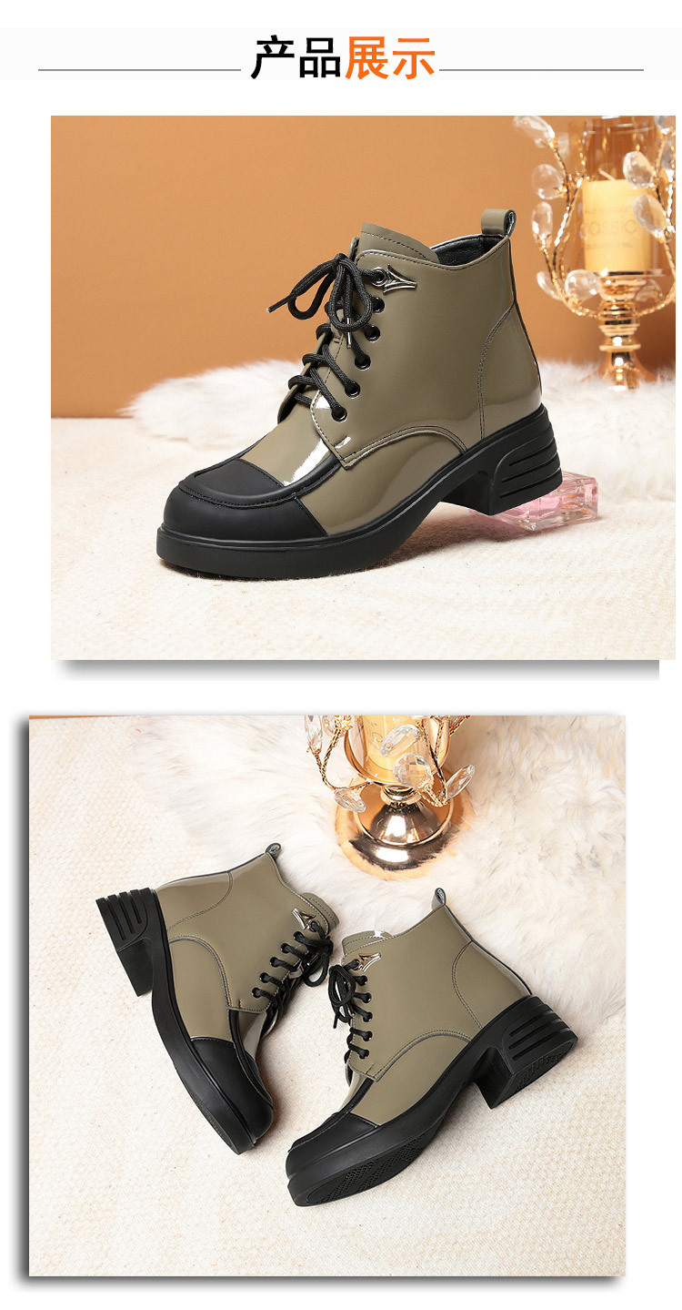 밝은 가죽 마틴 부츠 여성용 두꺼운 2023 가을과 겨울 새로운 앵클 부츠 영국 스타일 컬러 블록 부츠 여성 앵클 부츠 컬러 블록