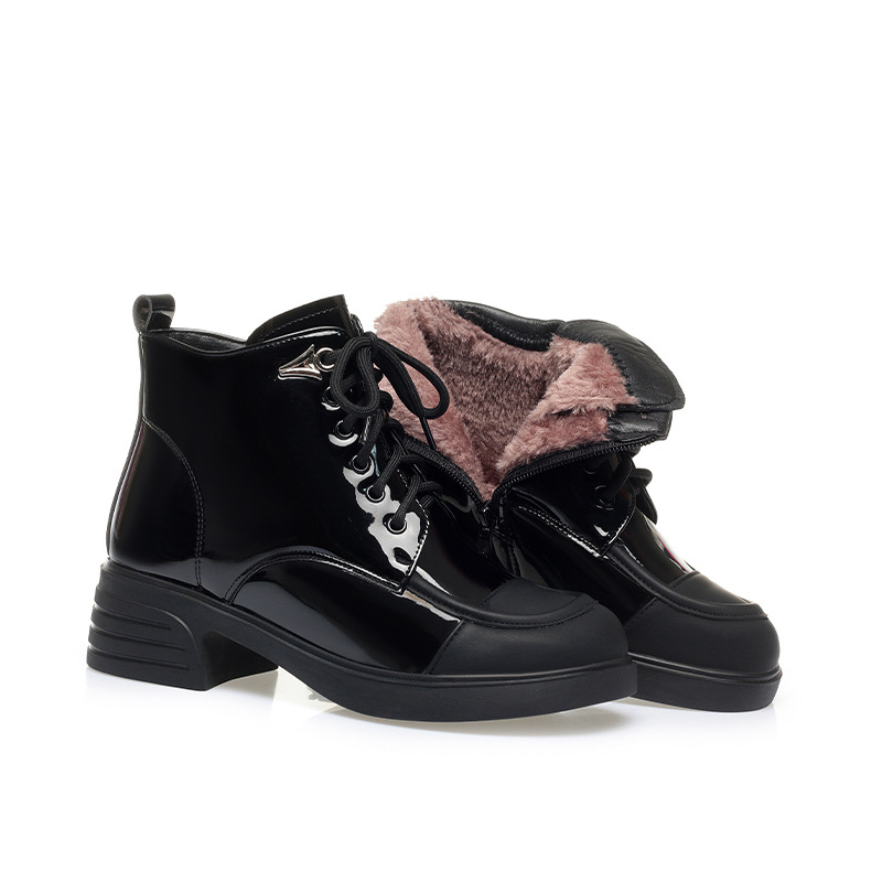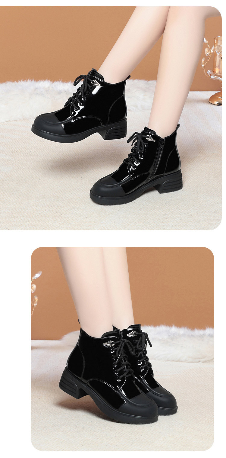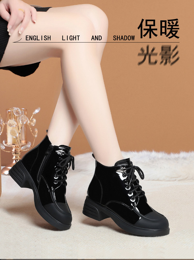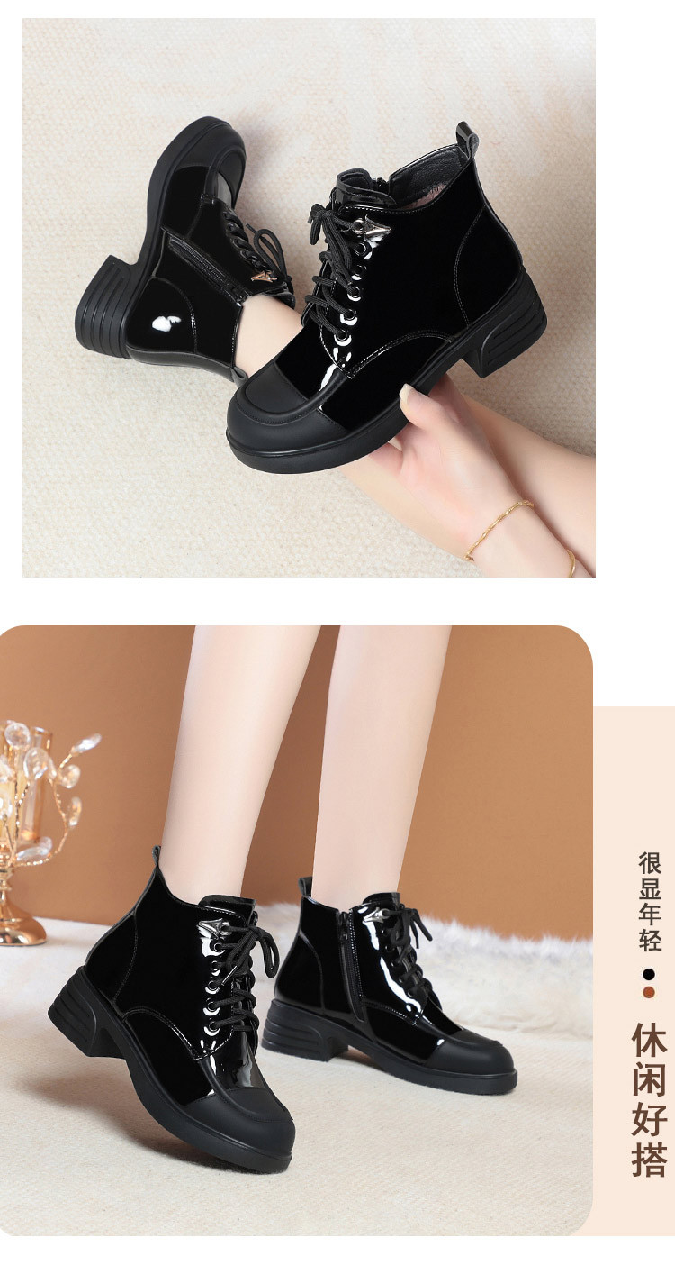 밝은 가죽 마틴 부츠 여성용 두꺼운 2023 가을과 겨울 새로운 앵클 부츠 영국 스타일 컬러 블록 부츠 여성 앵클 부츠 컬러 블록