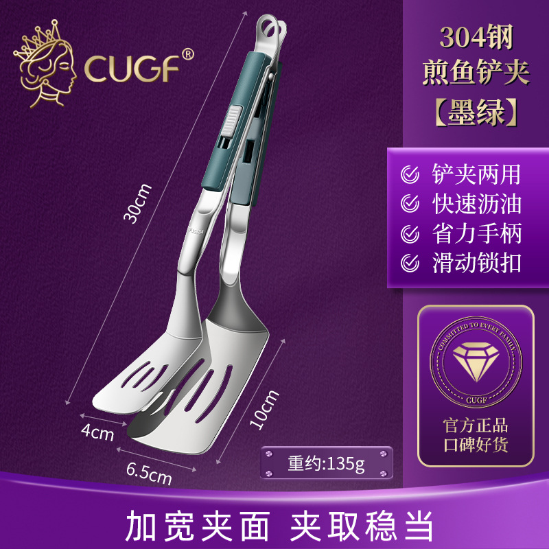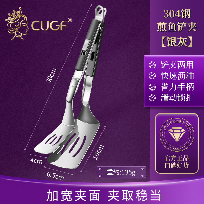주방 다기능 튀긴 생선 삽 클립 2 대 1 팬케이크 스테이크 특수 삽 유물 스테인레스 스틸 연장
