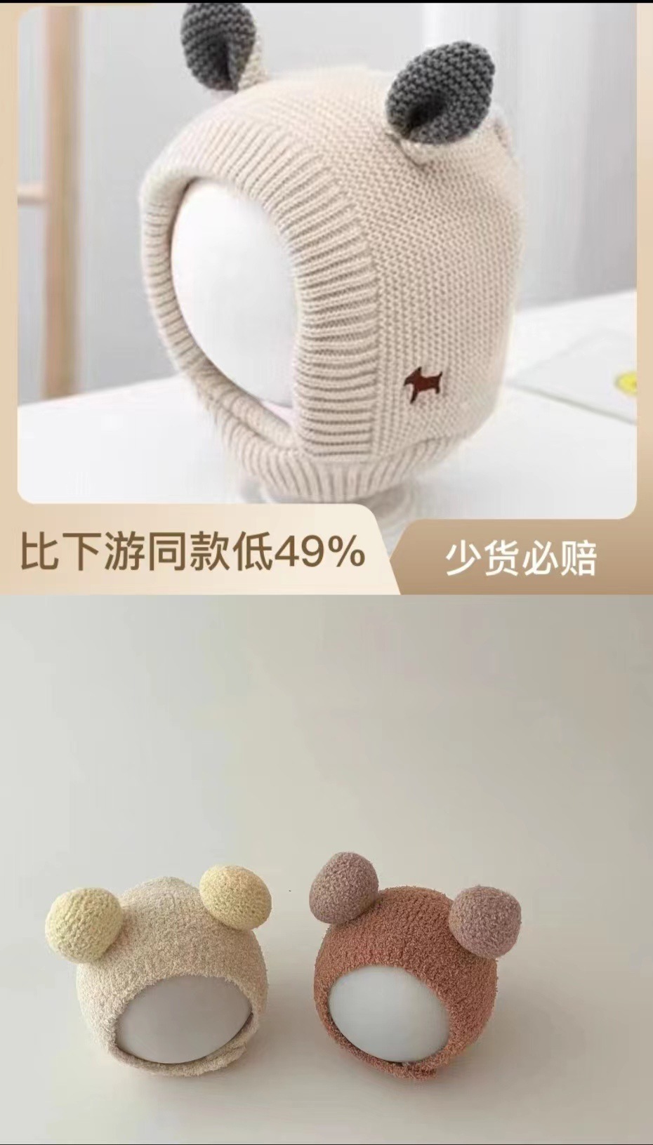 아기 모자 가을과 겨울 신생아 아기 귀 보호 모자 면 귀여운 따뜻한 아기 남성과 여성 니트 플러시 모자스토어 가기