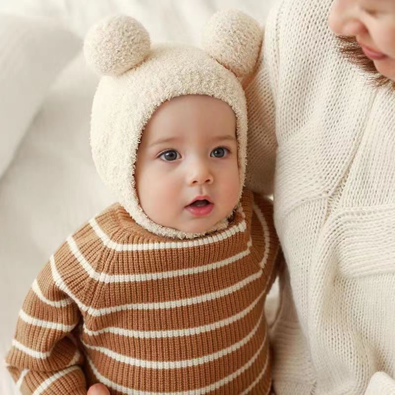 아기 모자 가을과 겨울 신생아 아기 귀 보호 모자 면 귀여운 따뜻한 아기 남성과 여성 니트 플러시 모자